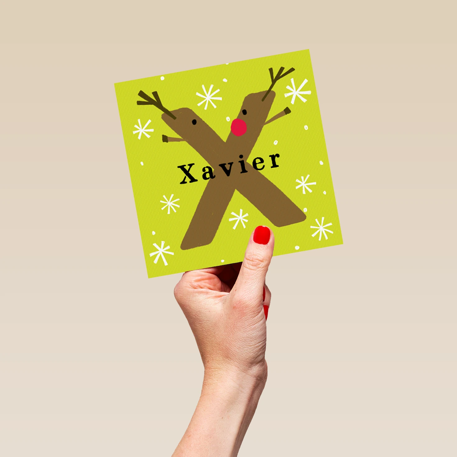 Pod Personalised Reindeer Monogram Letter X Christmas Card