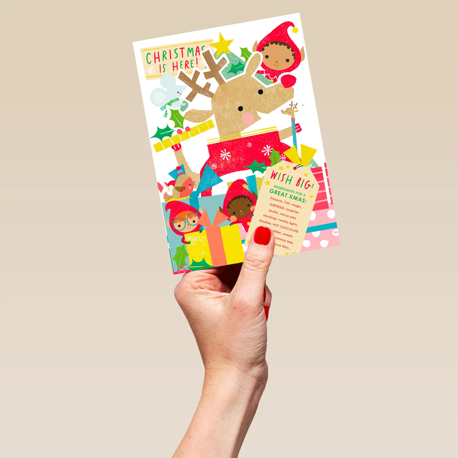 Show them you care with a personalised reindeer wish list card from Hallmark. Our Christmas cards are printed on premium quality, FSC®-certified card & delivered nationwide. This card is available as standard 12cm by 16.7cm and large 15.5cm by 21.6cm.