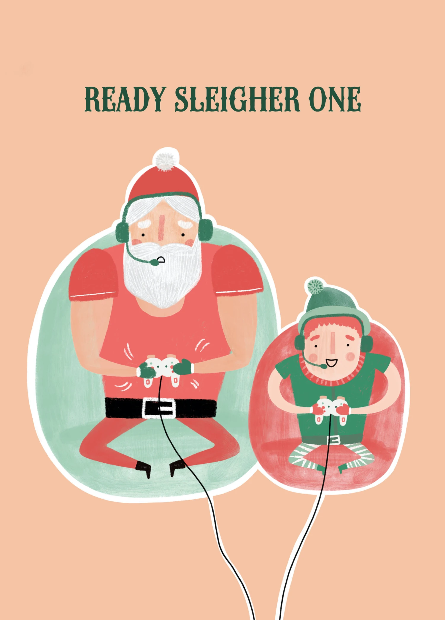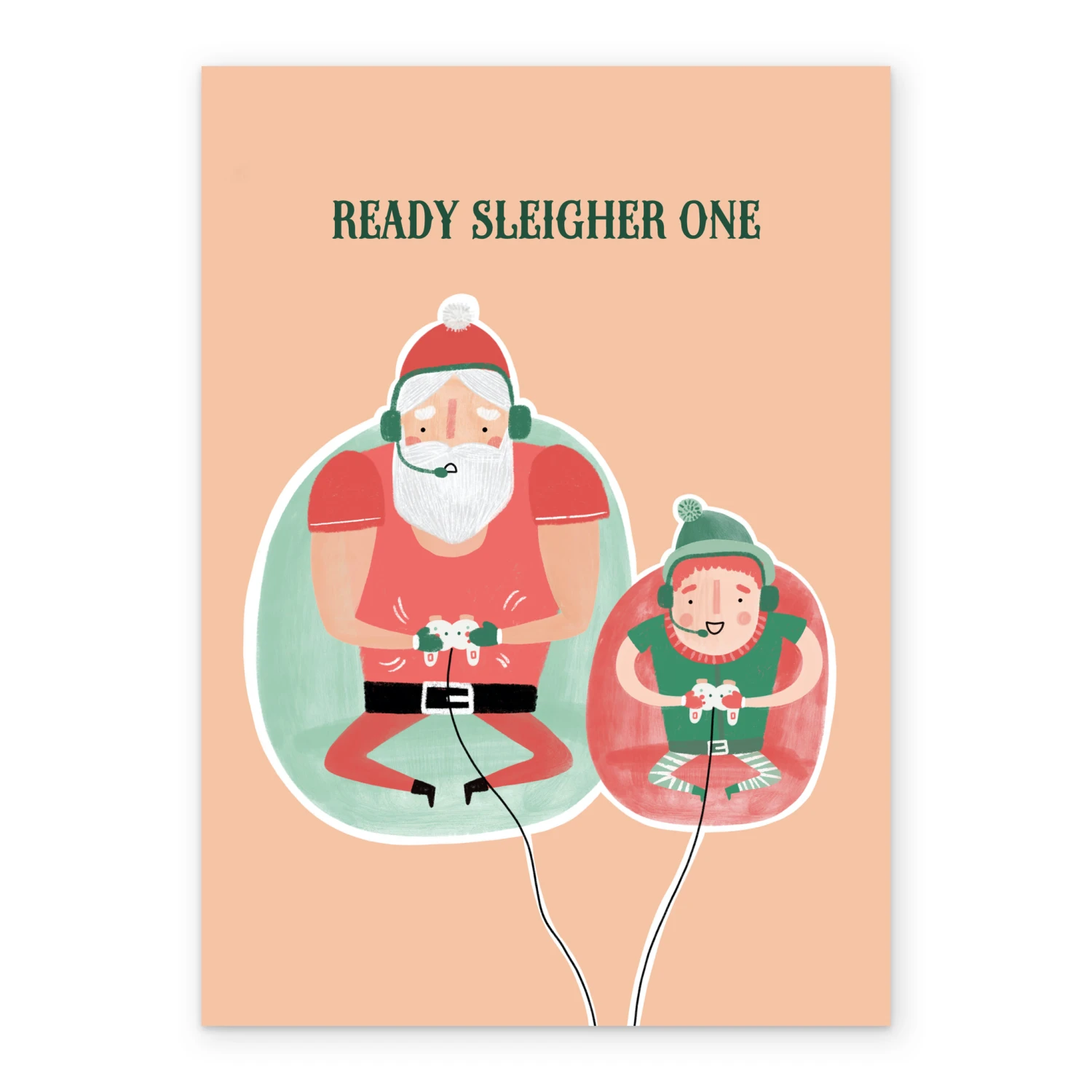 Pod Personalised Santa And Elf Ready Sleigher One Christmas Card