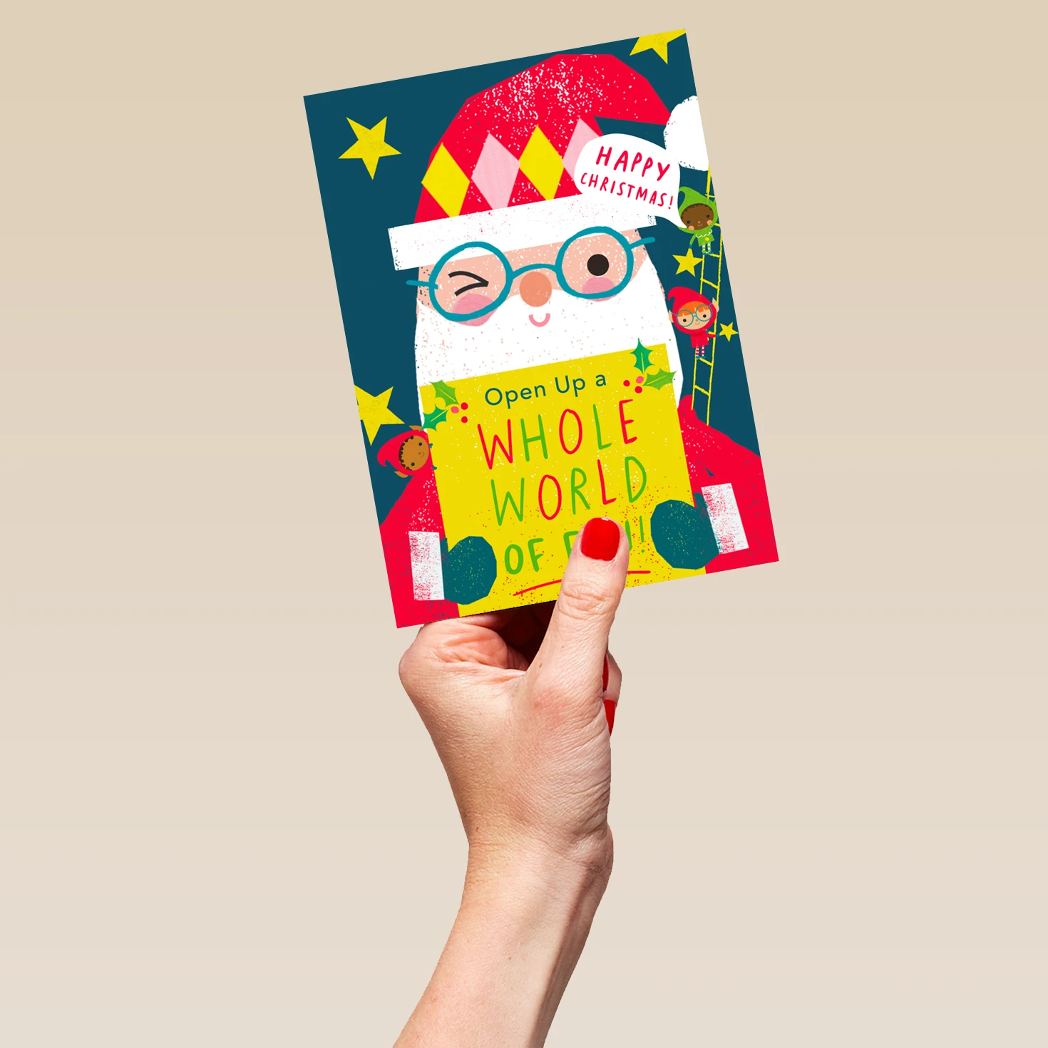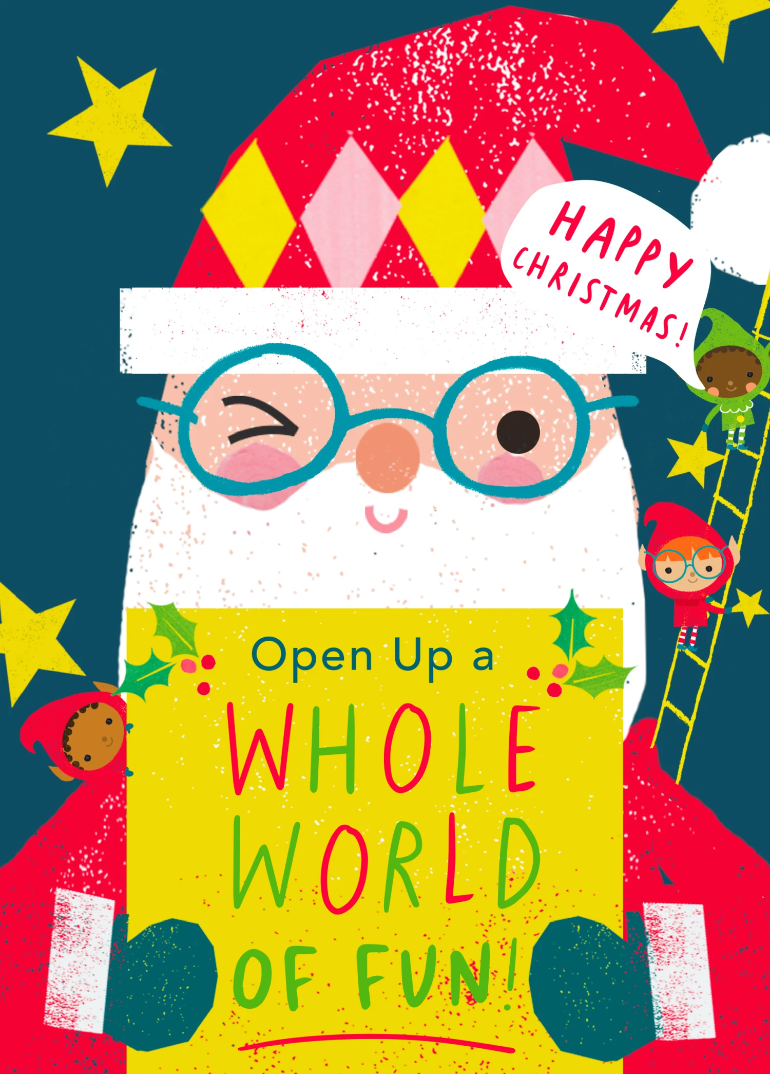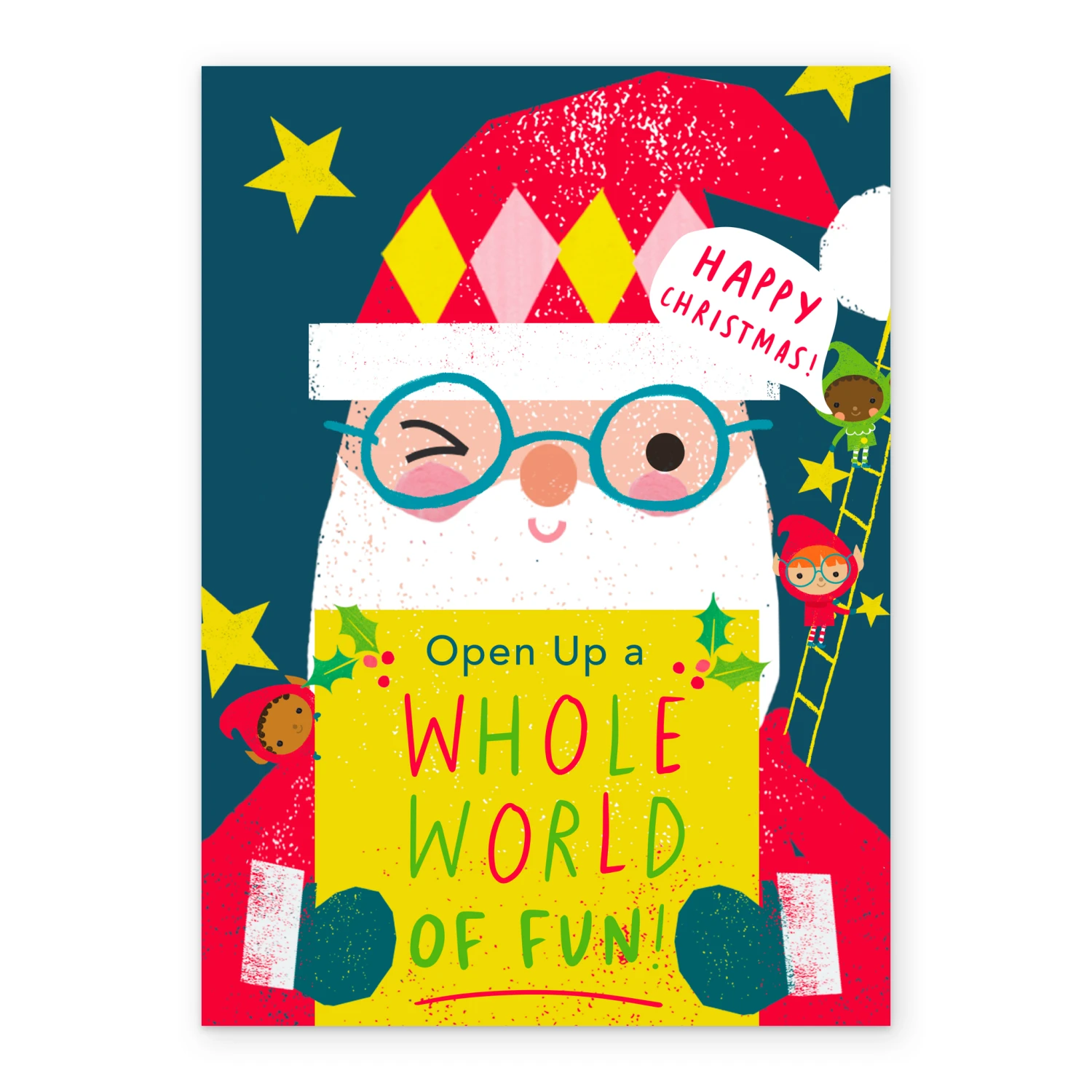 Show them you care with a personalised Santas elves card from Hallmark. Our Christmas cards are printed on premium quality, FSC®-certified card & delivered nationwide. This card is available as standard 12cm by 16.7cm and large 15.5cm by 21.6cm.