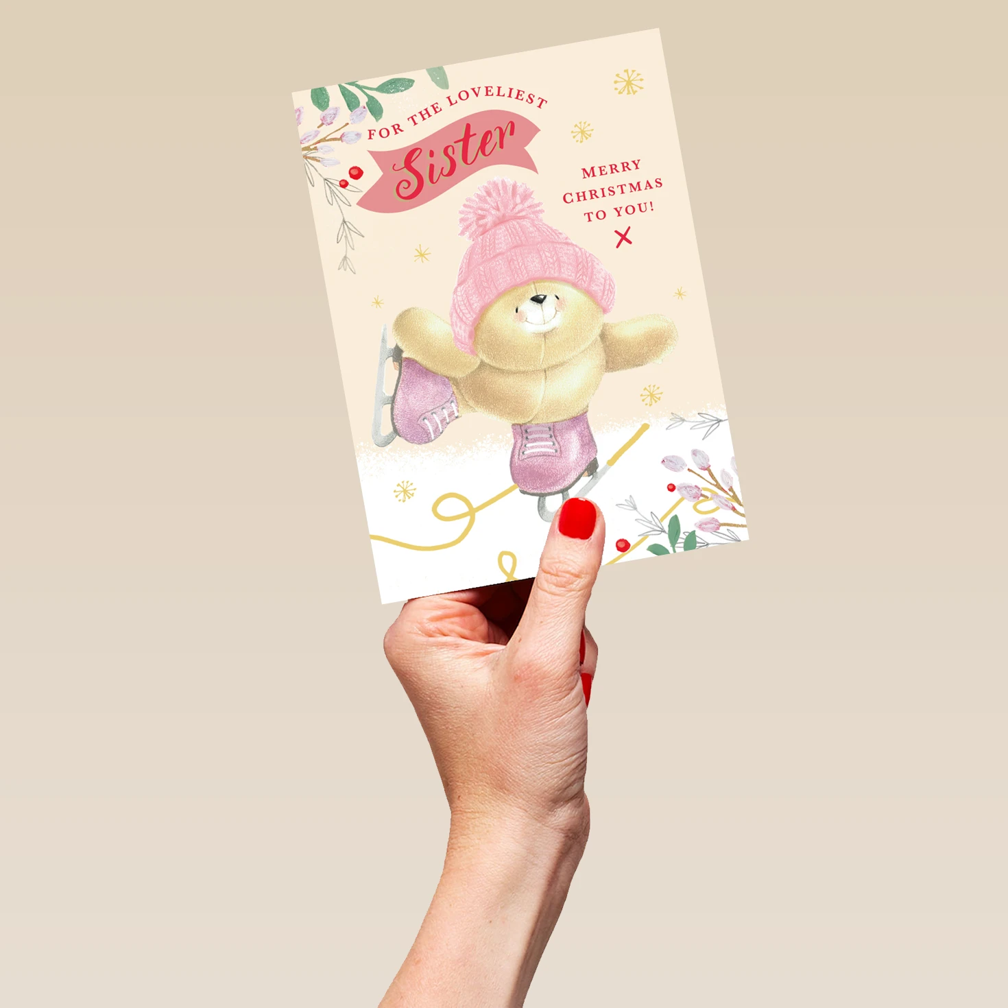 Pod Personalised Sister Forever Friends Ice Skates Christmas Card