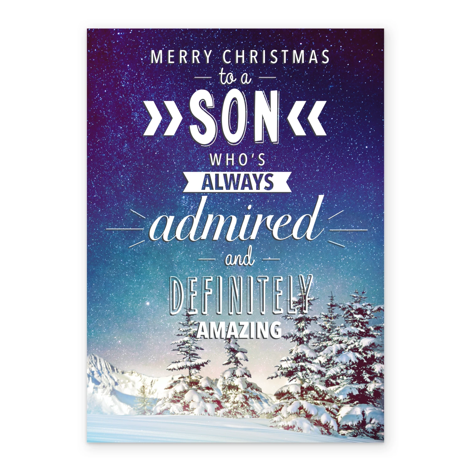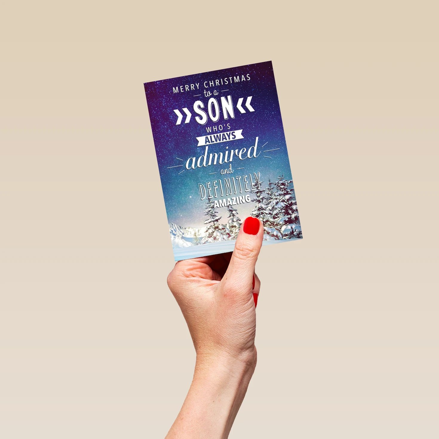 Show them you care with a personalised snow design son card from Hallmark. Our Christmas cards are printed on premium quality, FSC®-certified card & delivered nationwide. This card is available as standard 12cm by 16.7cm and large 15.5cm by 21.6cm.