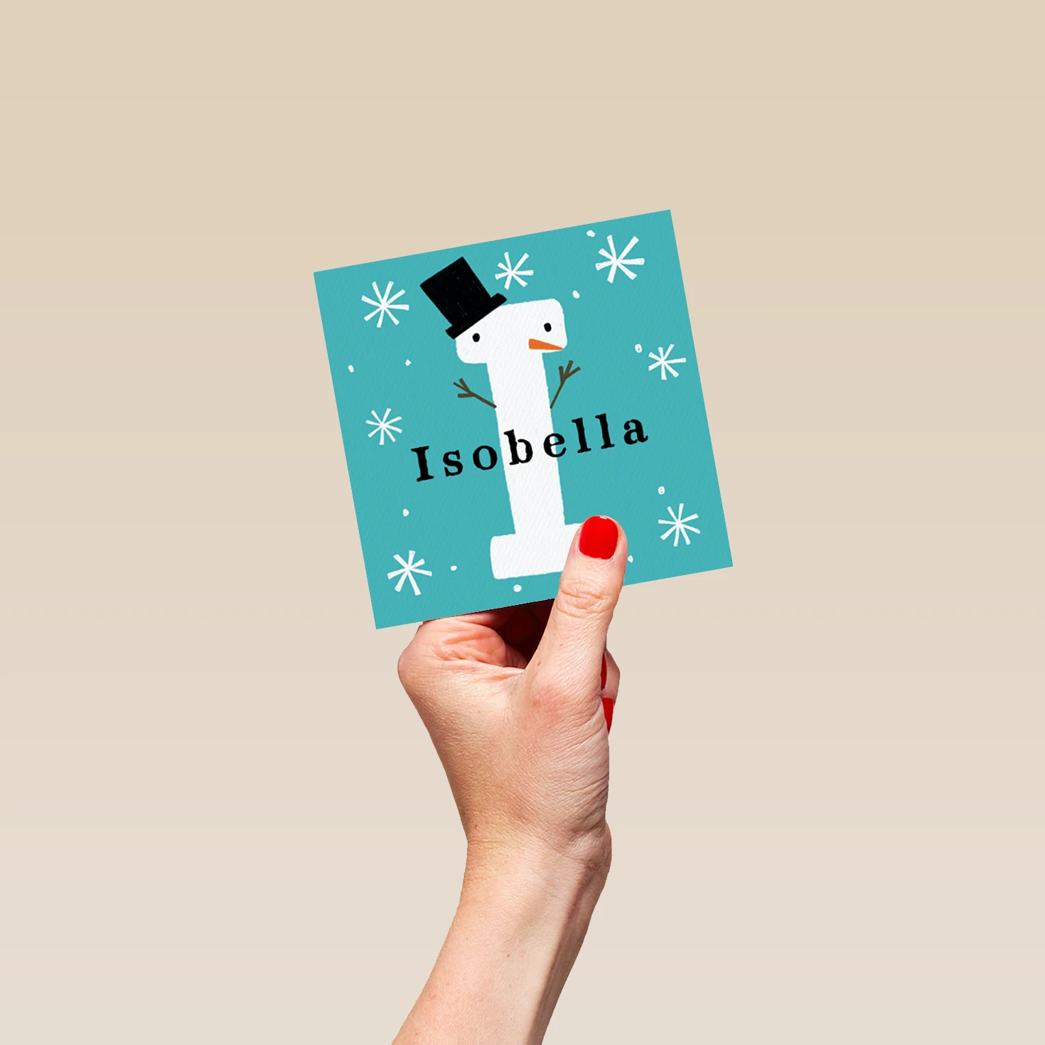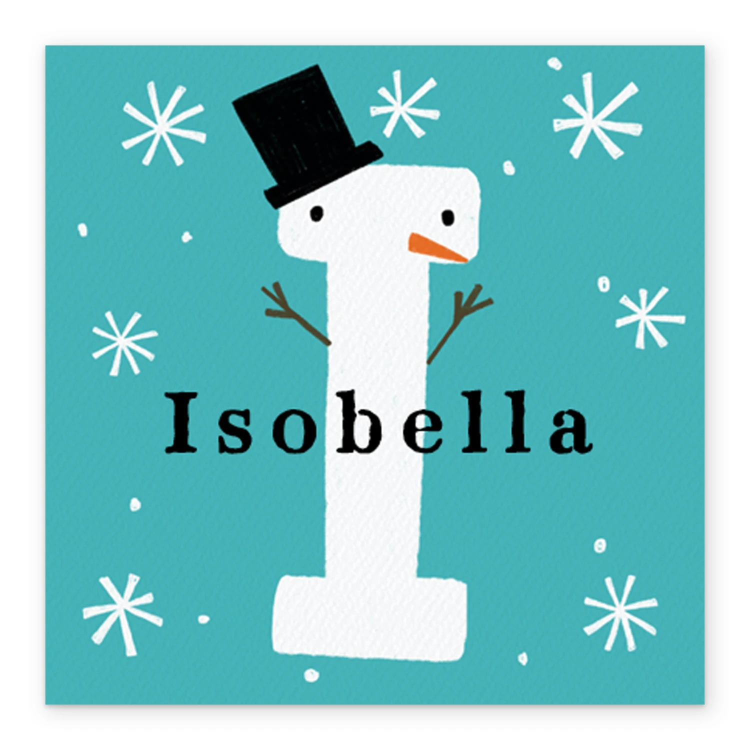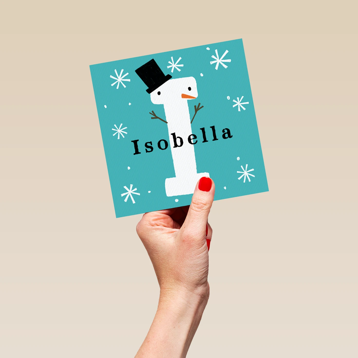 Pod Personalised Snowman Monogram Letter I Christmas Card