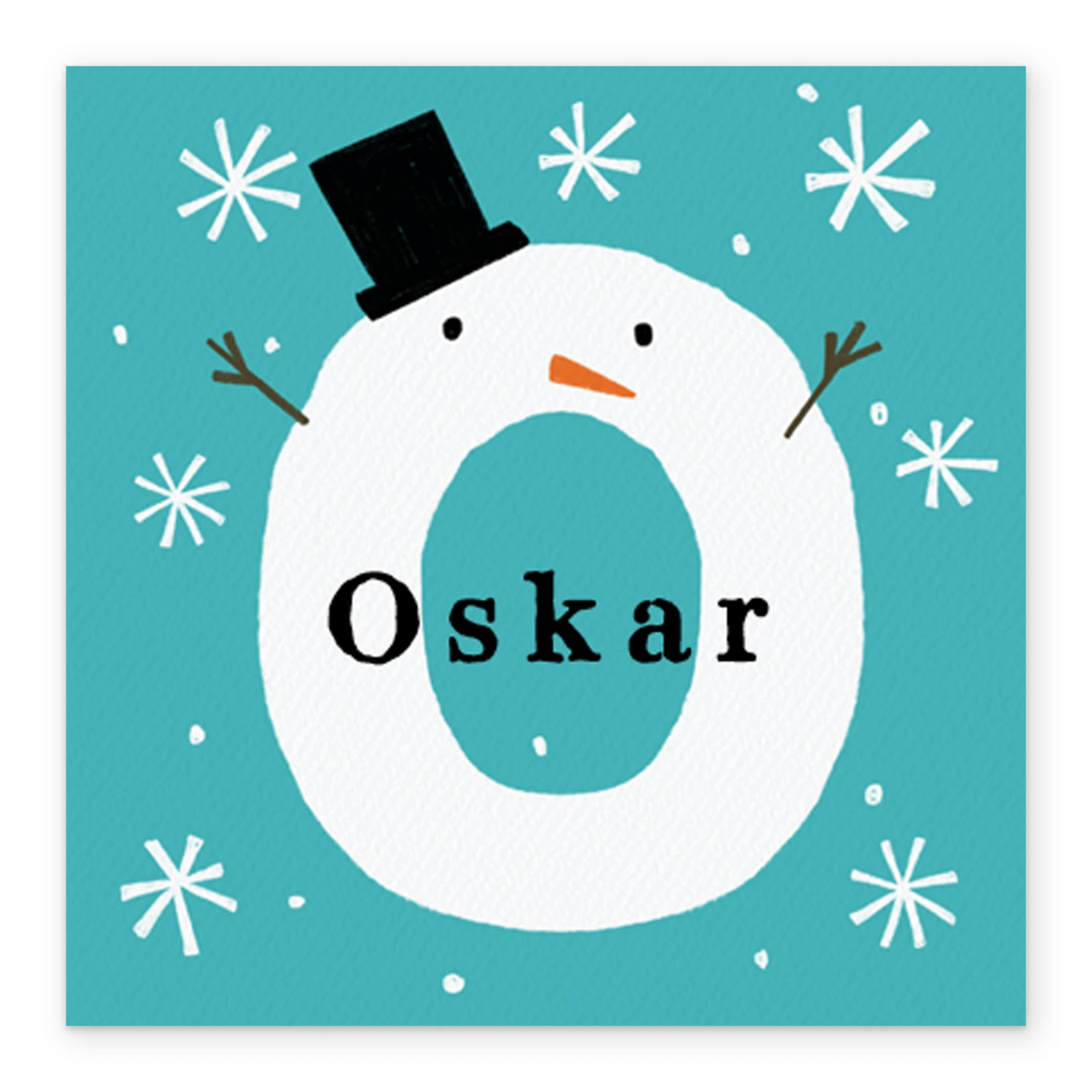 Show them you care with a personalised snowman monogram letter O Christmas card from Hallmark. Our greetings cards are printed on premium quality, FSC®-certified card & delivered nationwide. This card is available as standard 12cm by 12cm and large 15cm by 15cm.