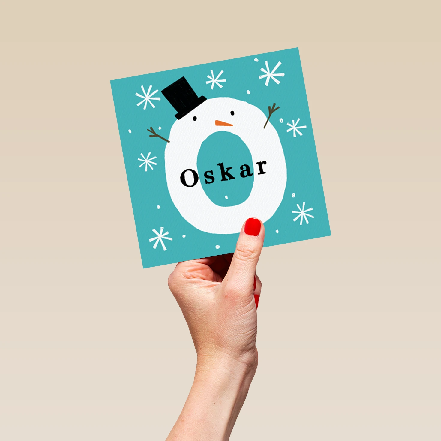 Pod Personalised Snowman Monogram Letter O Christmas Card