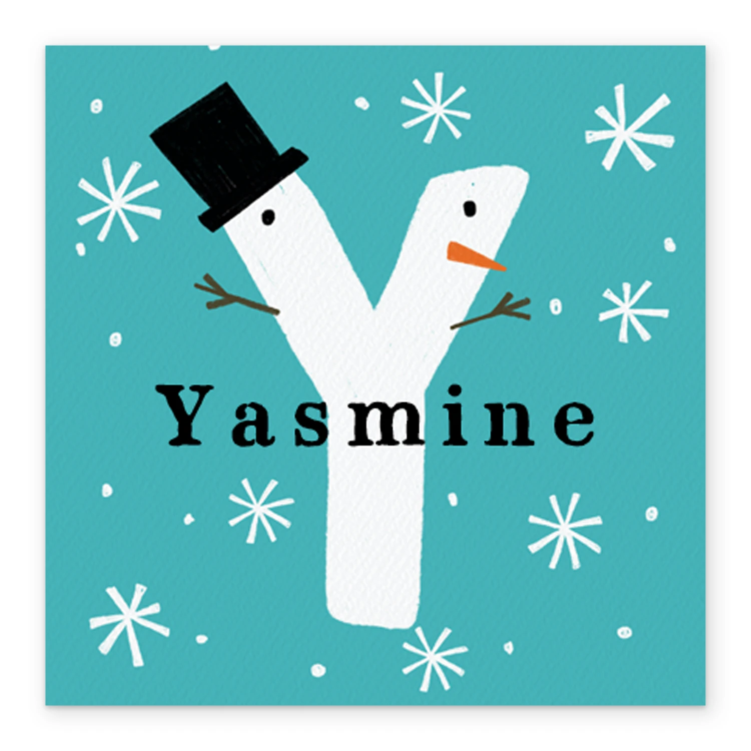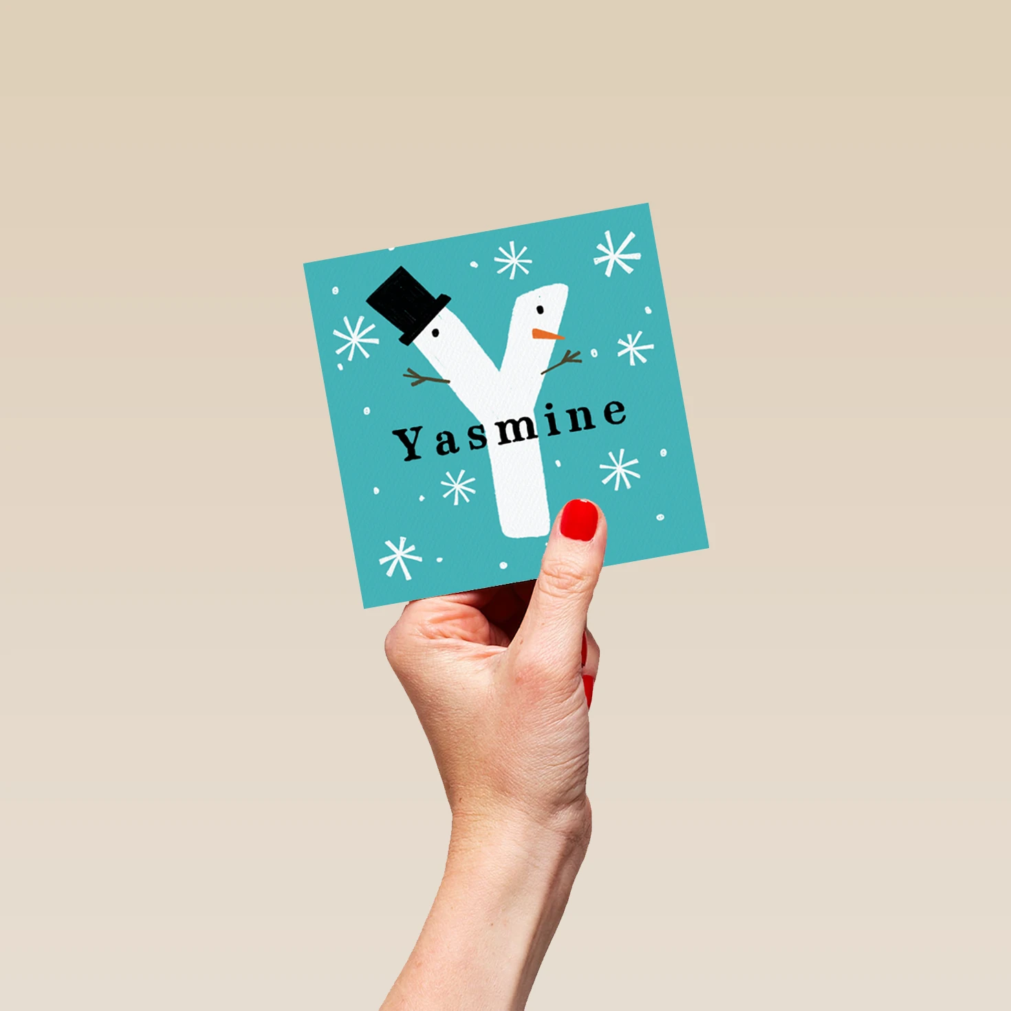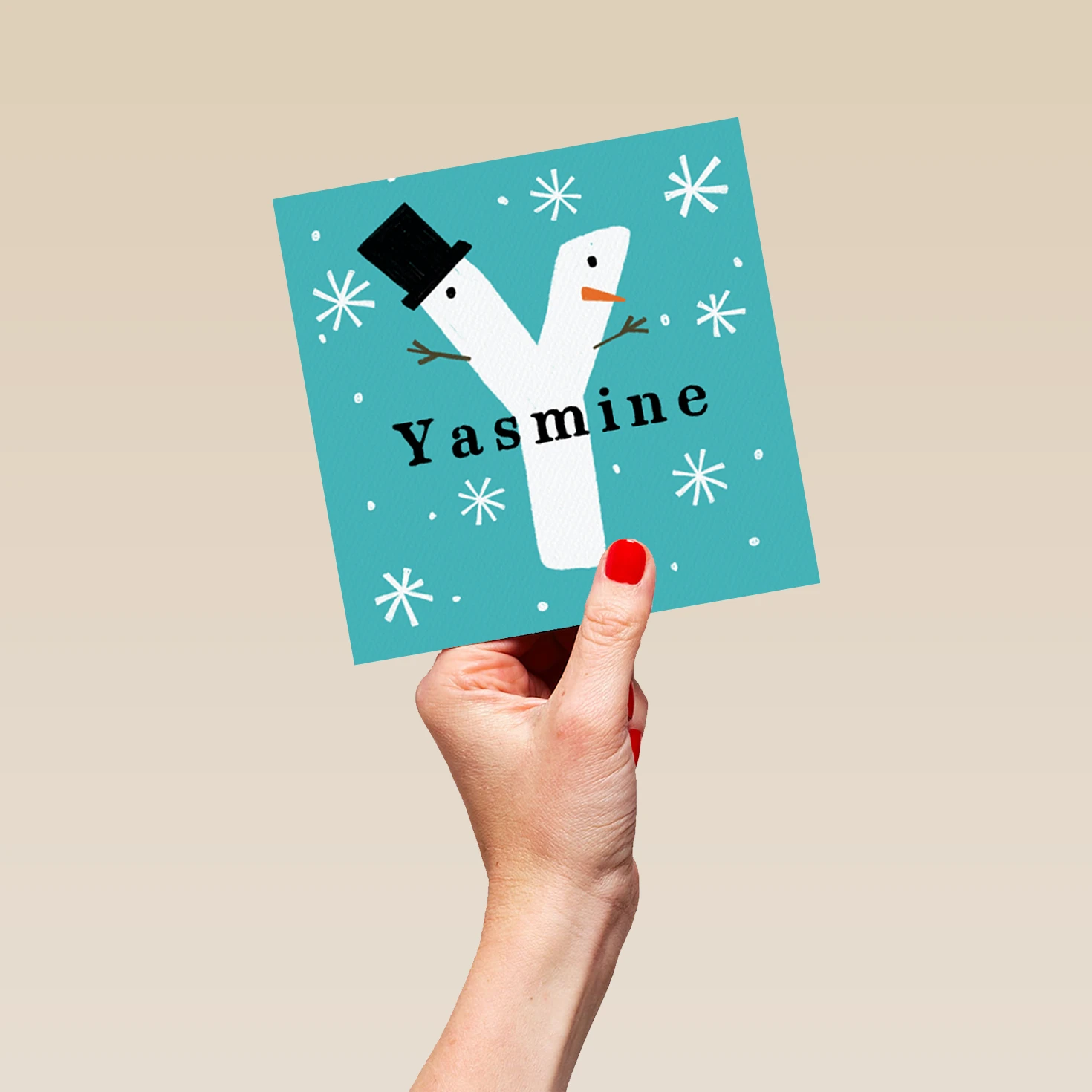 Pod Personalised Snowman Monogram Letter Y Christmas Card
