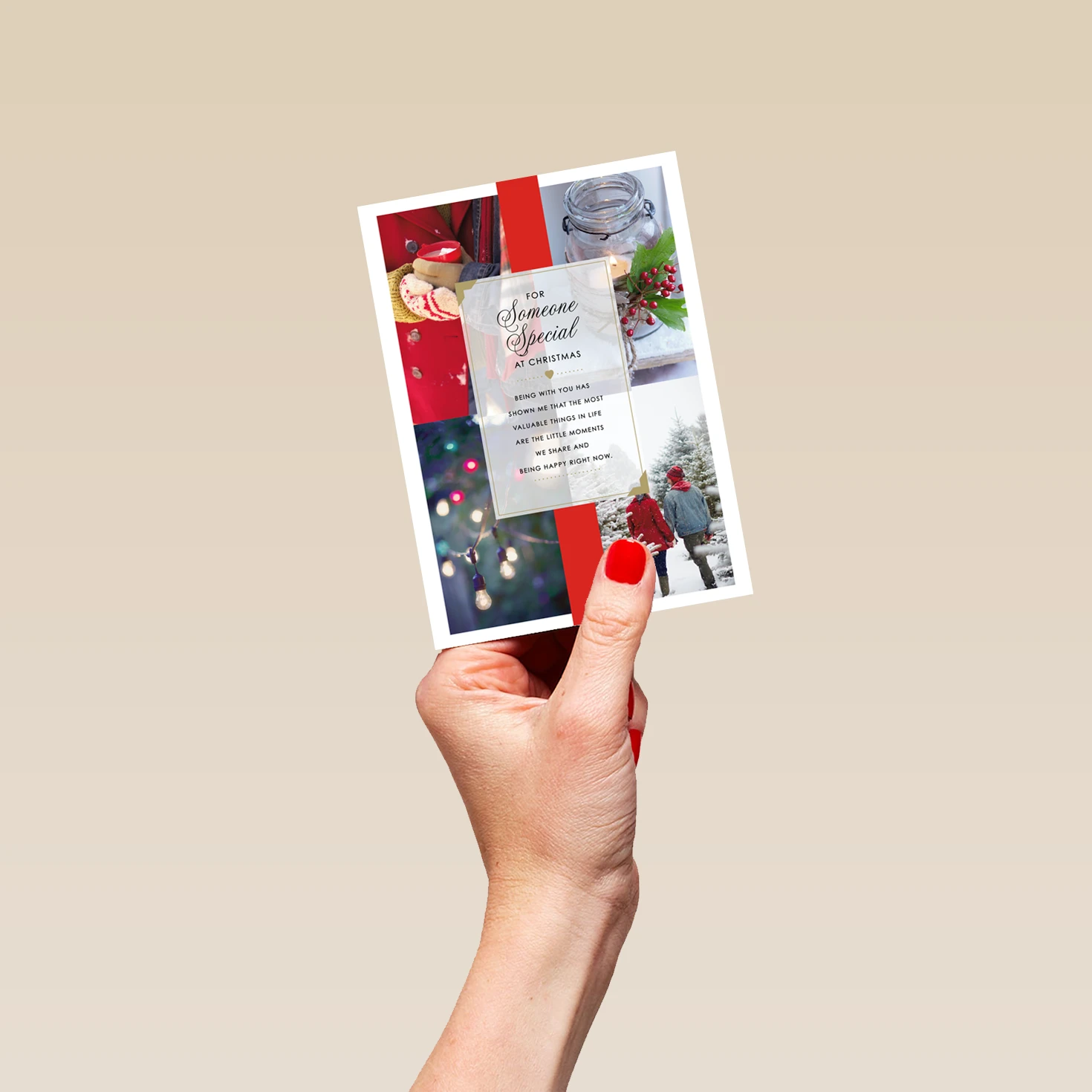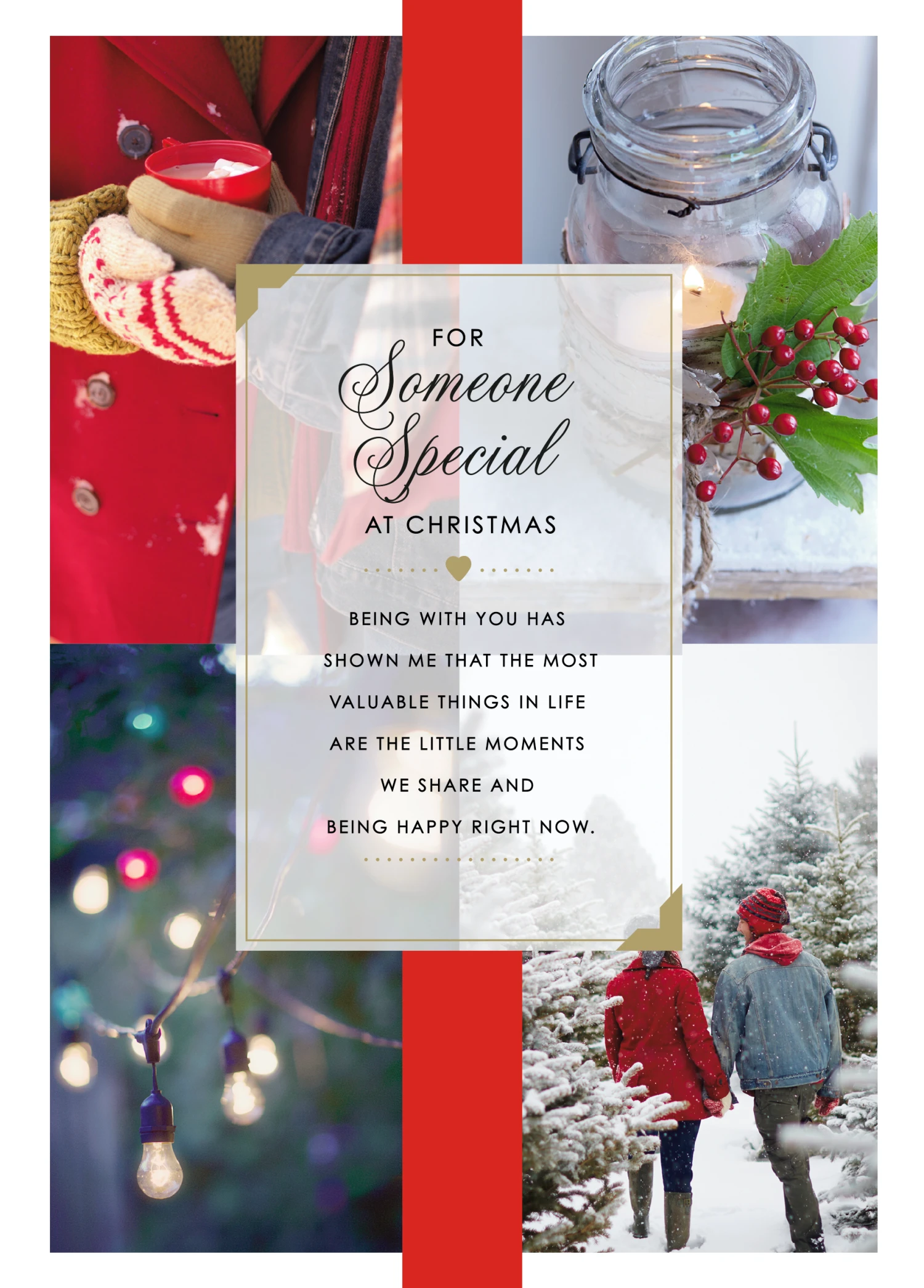 Show them you care with a personalised someone special ribbon poem card from Hallmark. Our Christmas cards are printed on premium quality, FSC®-certified card & delivered nationwide. This card is available as standard 12cm by 16.7cm and large 15.5cm by 21.6cm.