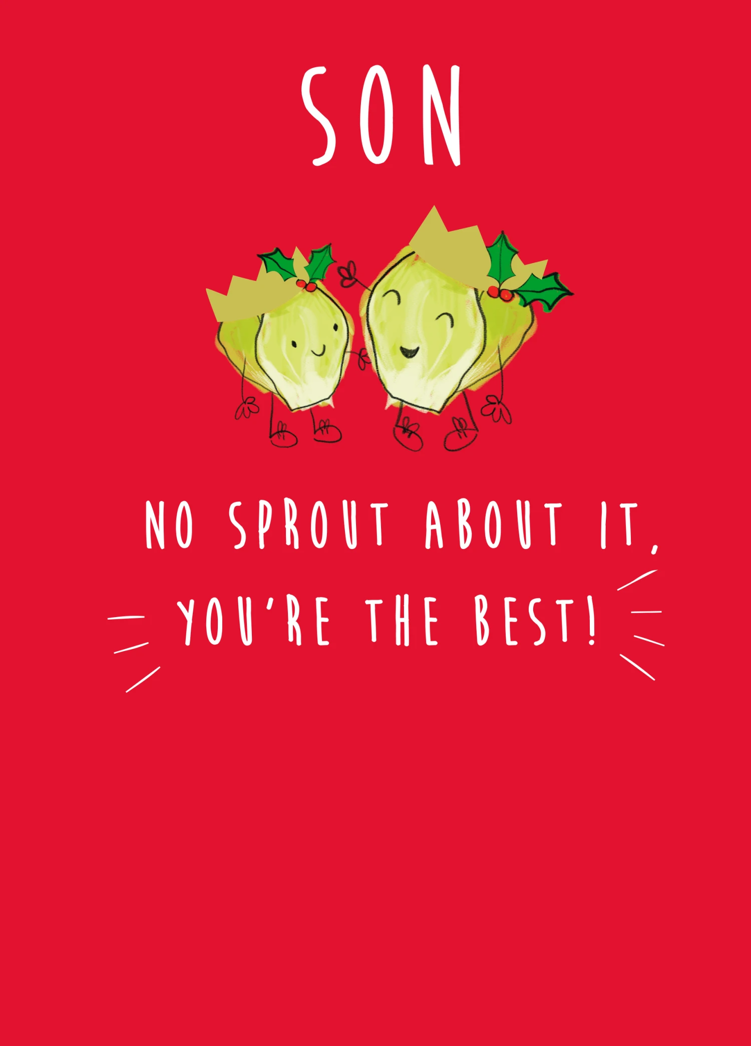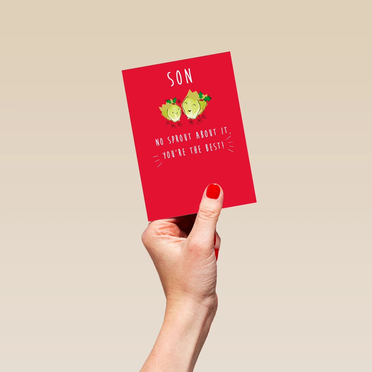 Show them you care with a personalised son Christmas sprouts card from Hallmark. Our Christmas cards are printed on premium quality, FSC®-certified card & delivered nationwide. This card is available as standard 12cm by 16.7cm and large 15.5cm by 21.6cm.