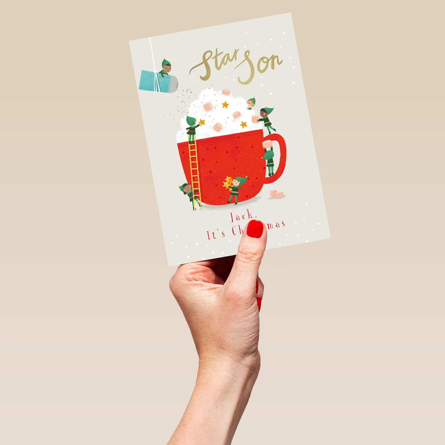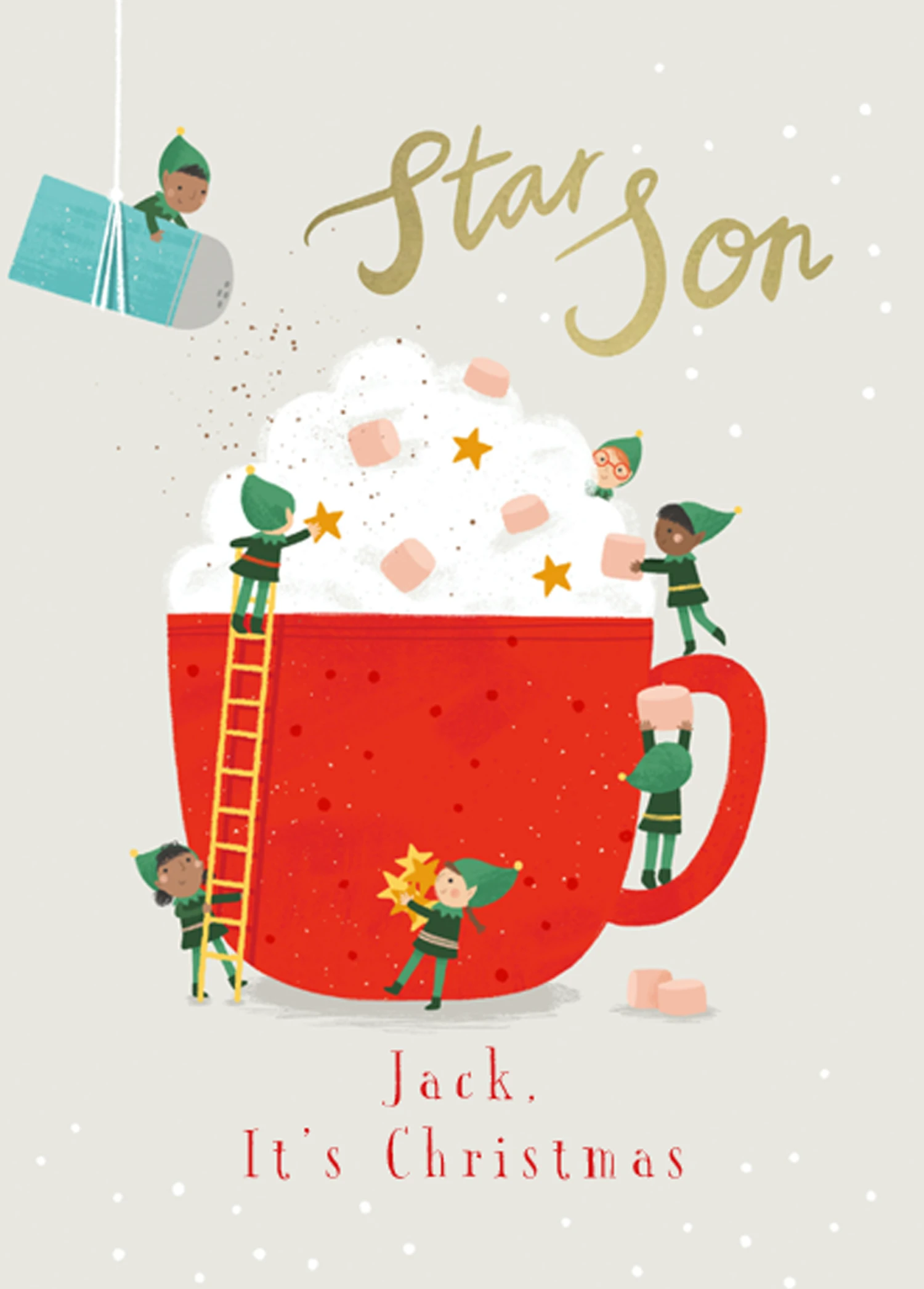 Show them you care with a personalised son magical hot chocolate Christmas card from Hallmark. Our greetings cards are printed on premium quality, FSC®-certified card & delivered nationwide. This card is available as standard 12cm by 16.7cm and large 15.5cm by 21.6cm.