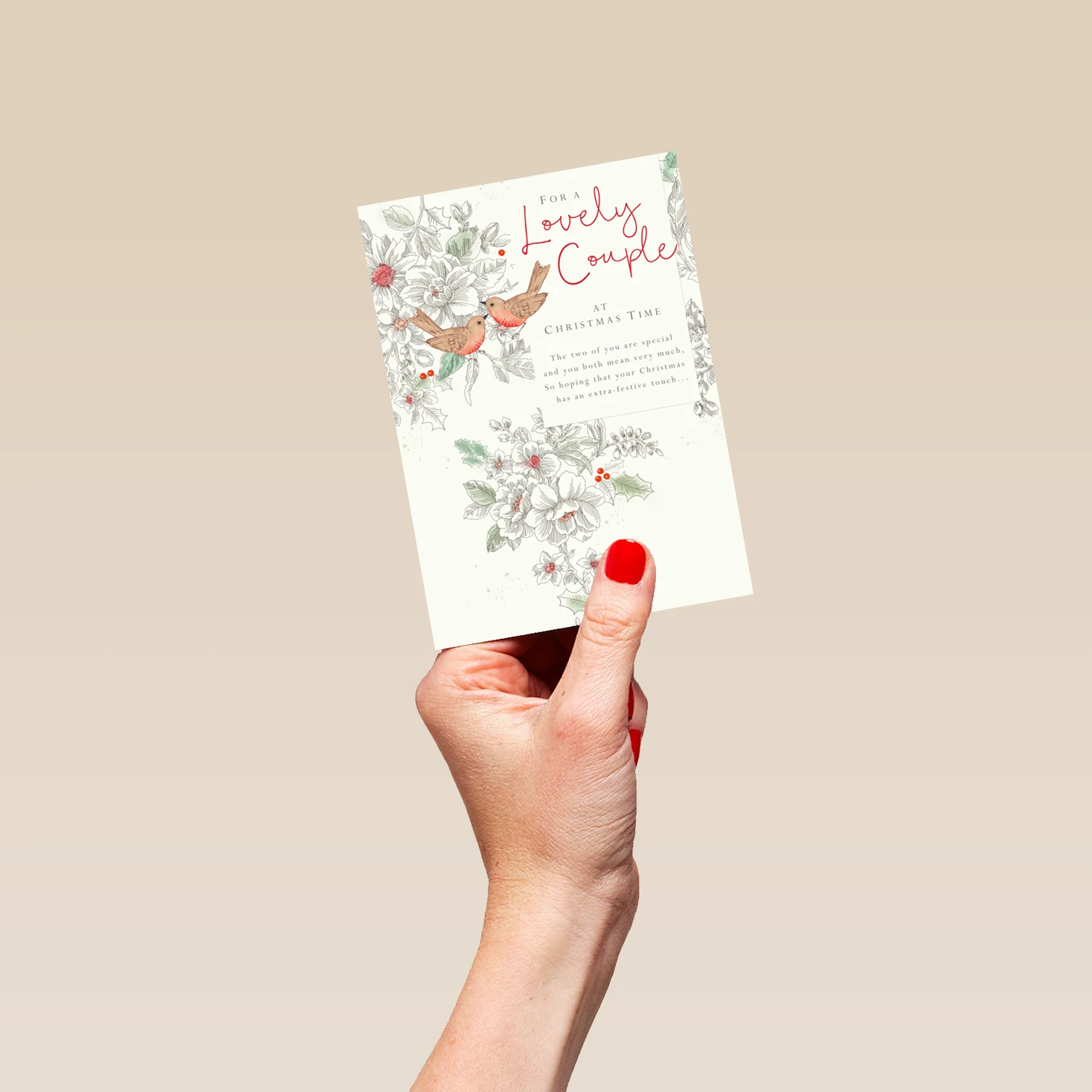 Show them you care with a personalised special couple Christmas robins verse card from Hallmark. Our greetings cards are printed on premium quality, FSC®-certified card & delivered nationwide. This card is available as standard 12cm by 16.7cm and large 15.5cm by 21.6cm.