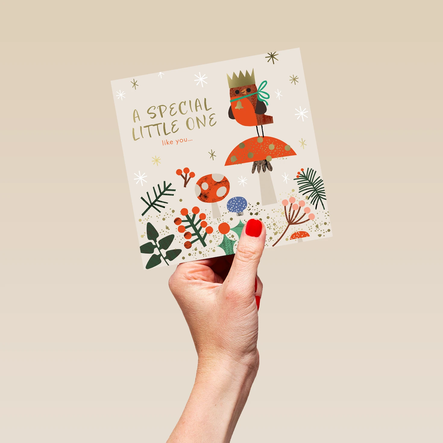 Show them you care with a personalised special little one cute woodland scene Christmas card from Hallmark. Our greetings cards are printed on premium quality, FSC®-certified card & delivered nationwide. This card is available as standard 12cm by 12cm and large 15cm by 15cm.
