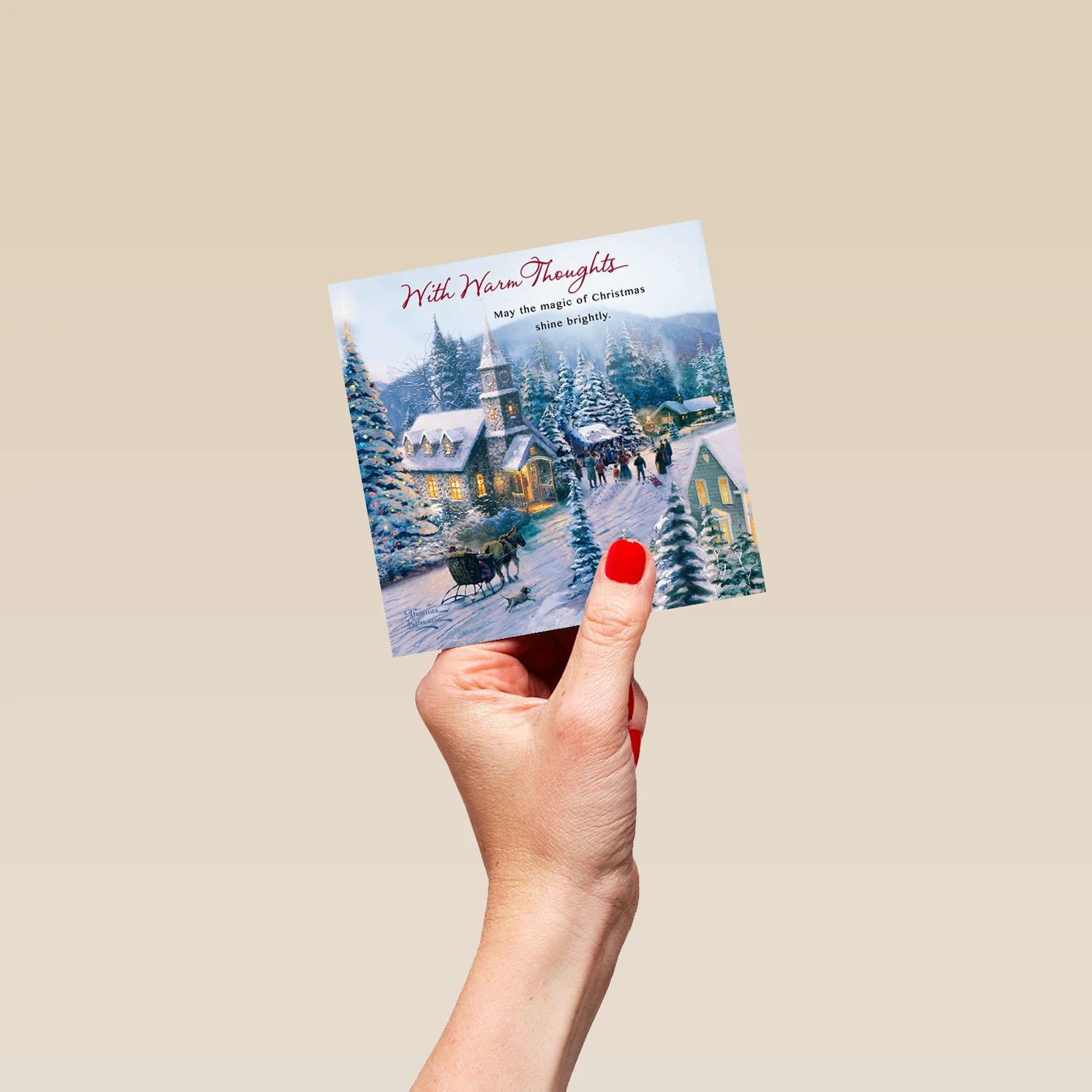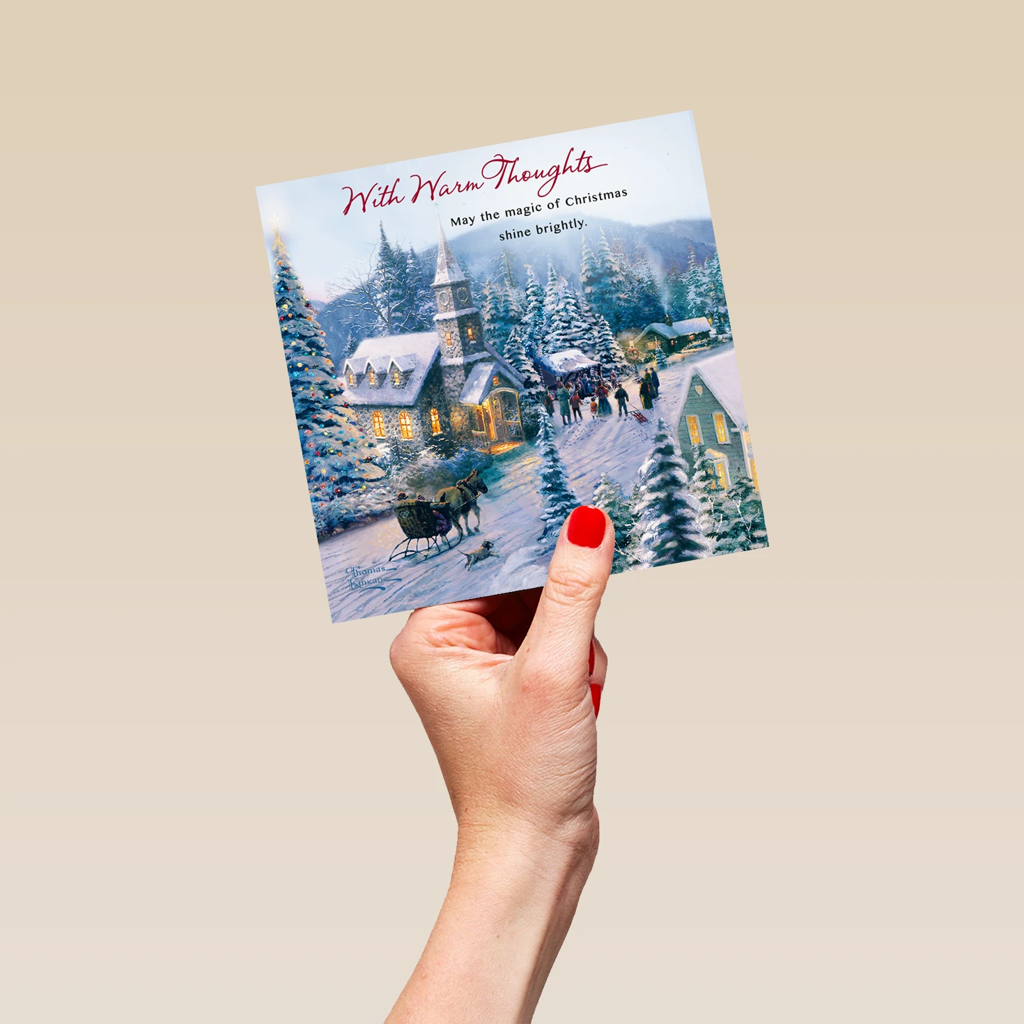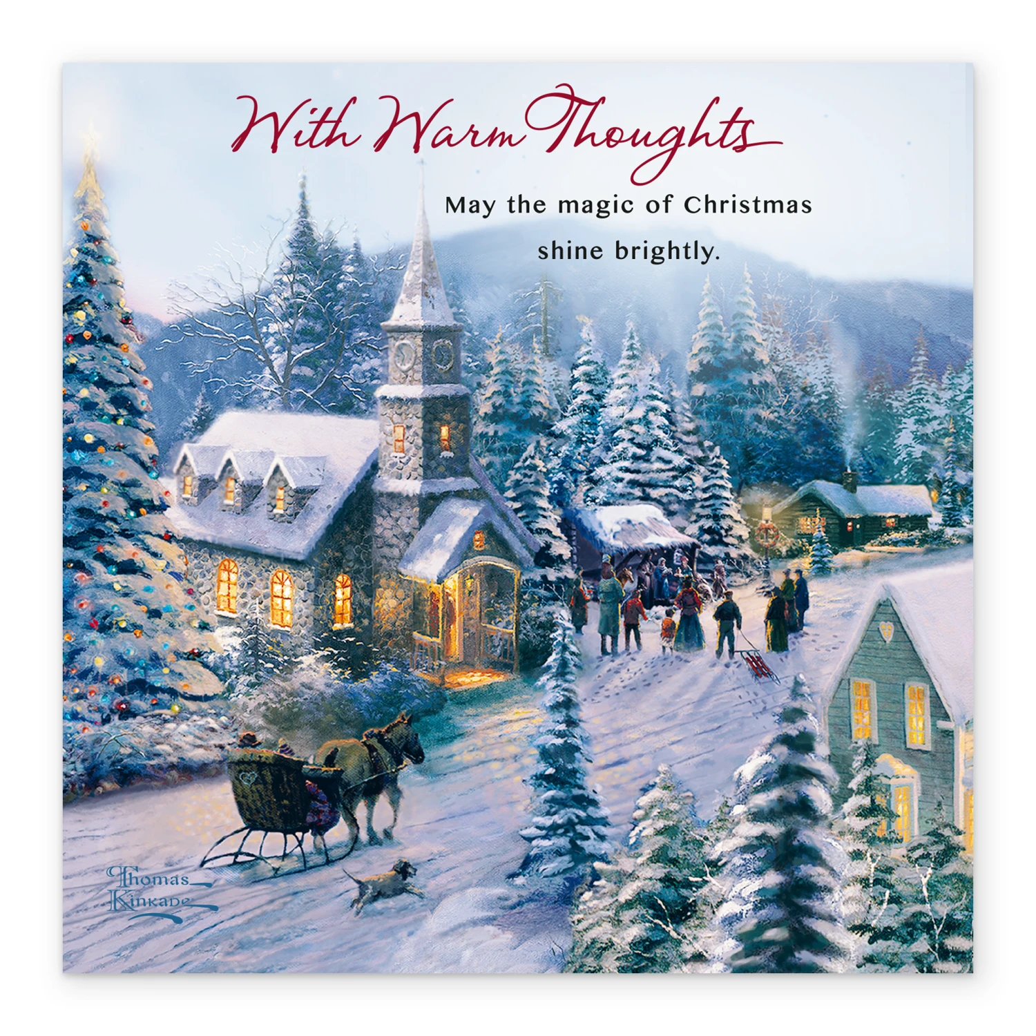 Show them you care with a personalised Thomas Kinkade Christmas card from Hallmark. Our Christmas cards are printed on premium quality, FSC®-certified card & delivered nationwide. This card is available as standard 12cm by 12cm and large 15cm by 15cm.