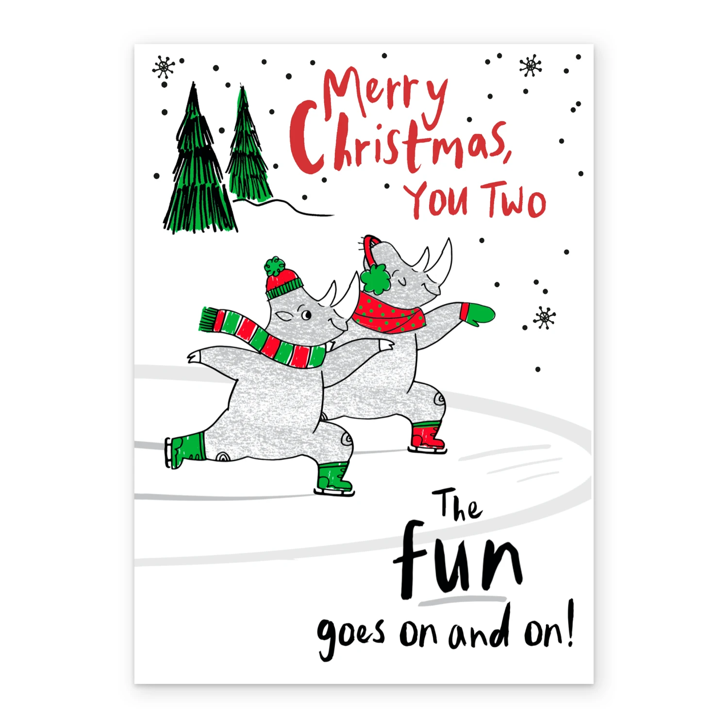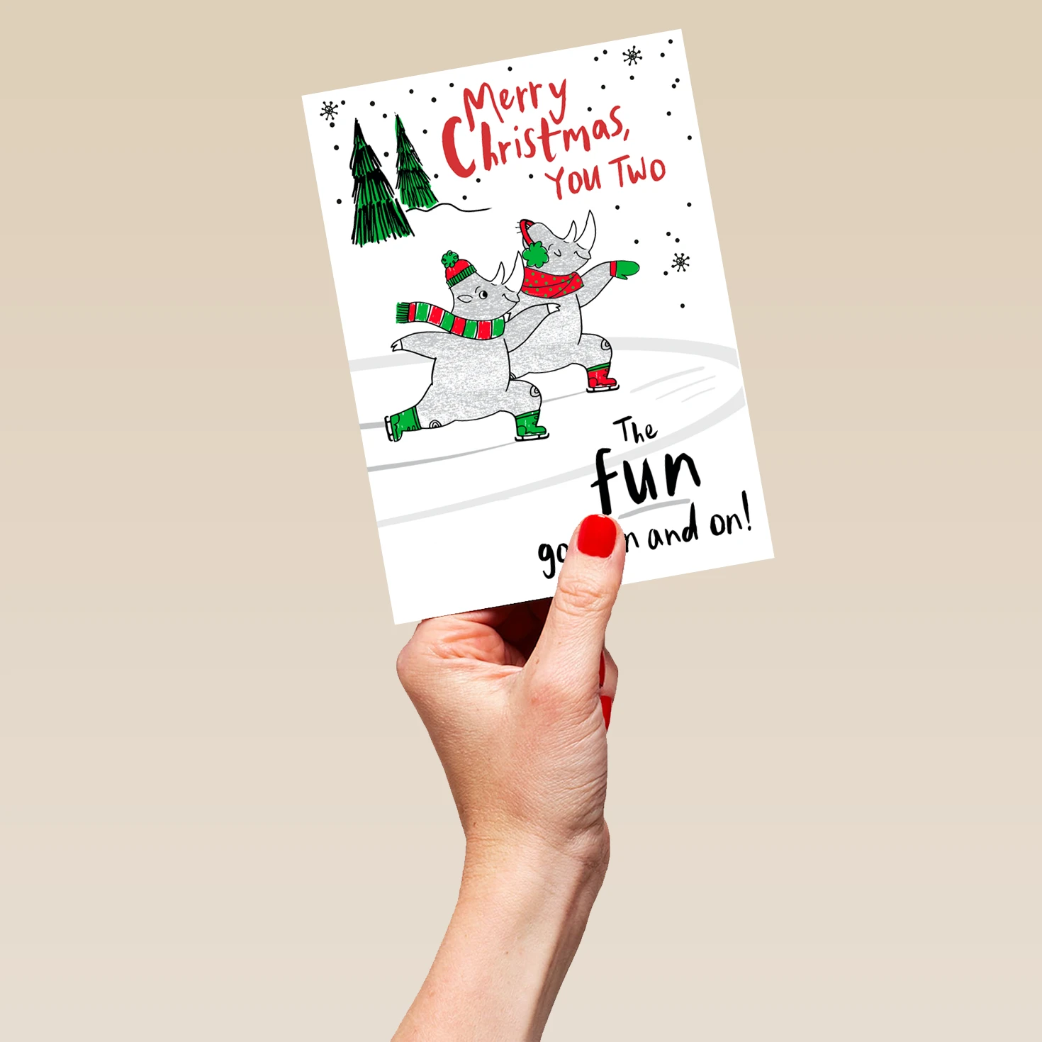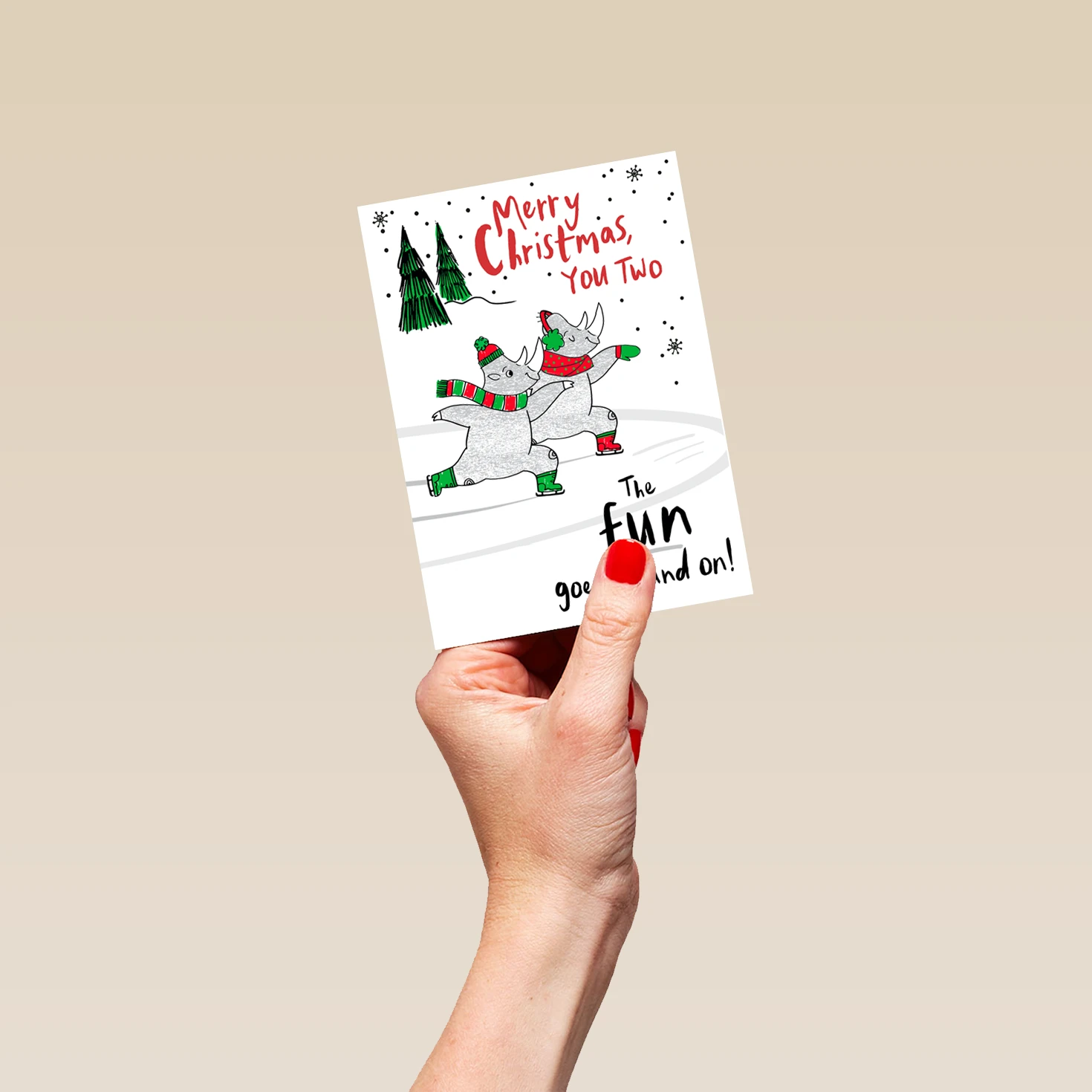 Pod Personalised To Both Merry Ice Skating Christmas Card