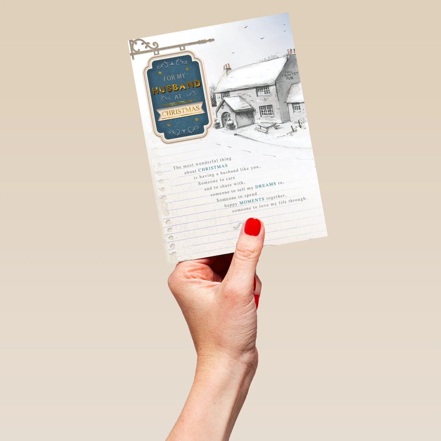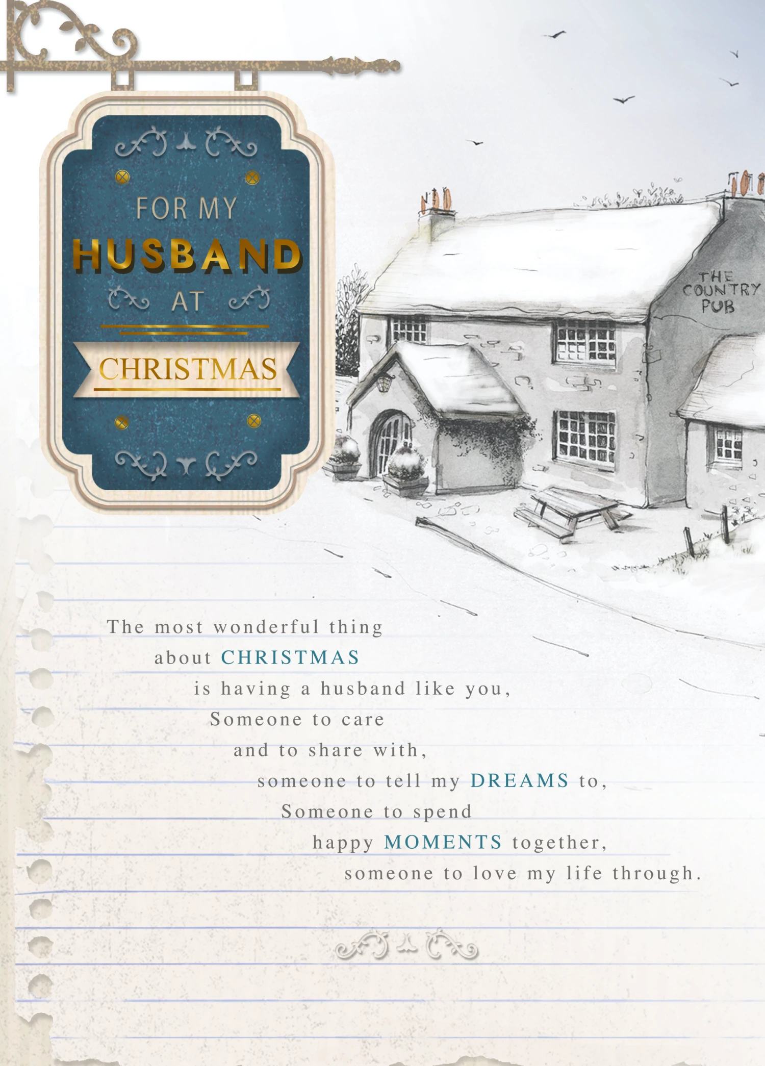 Show them you care with a personalised traditional husband card from Hallmark. Our Christmas cards are printed on premium quality, FSC®-certified card & delivered nationwide. This card is available as standard 12cm by 16.7cm and large 15.5cm by 21.6cm.