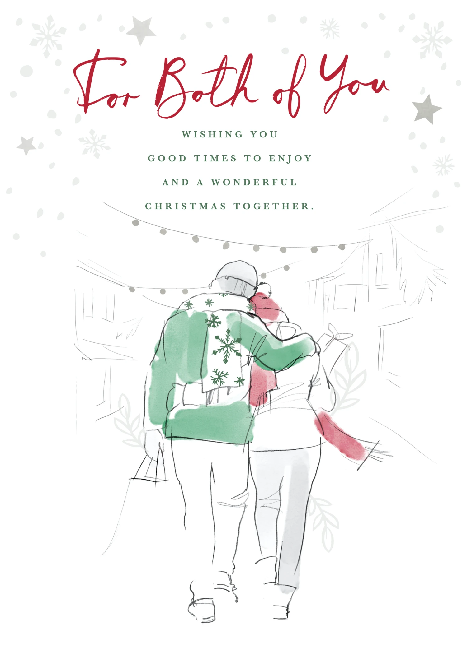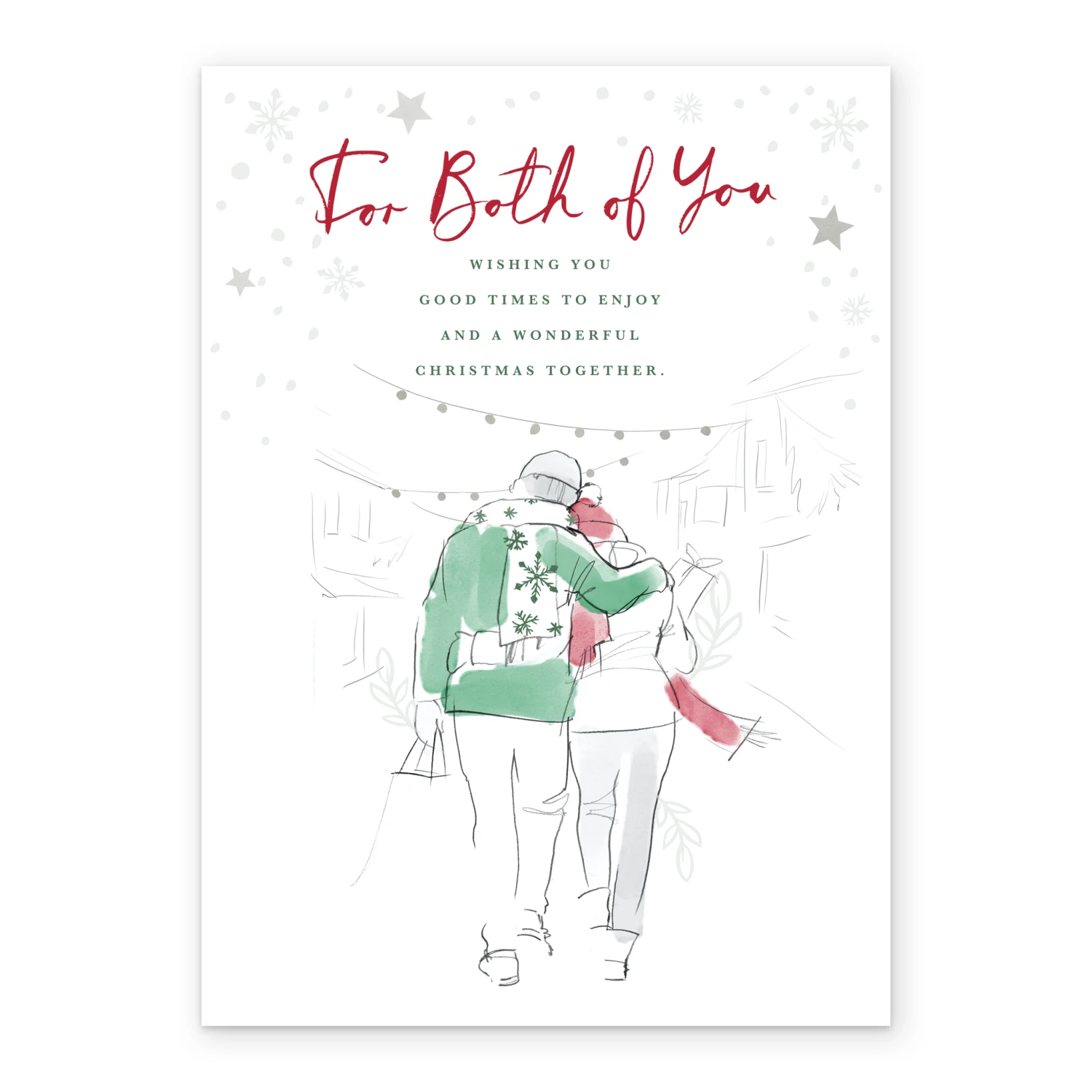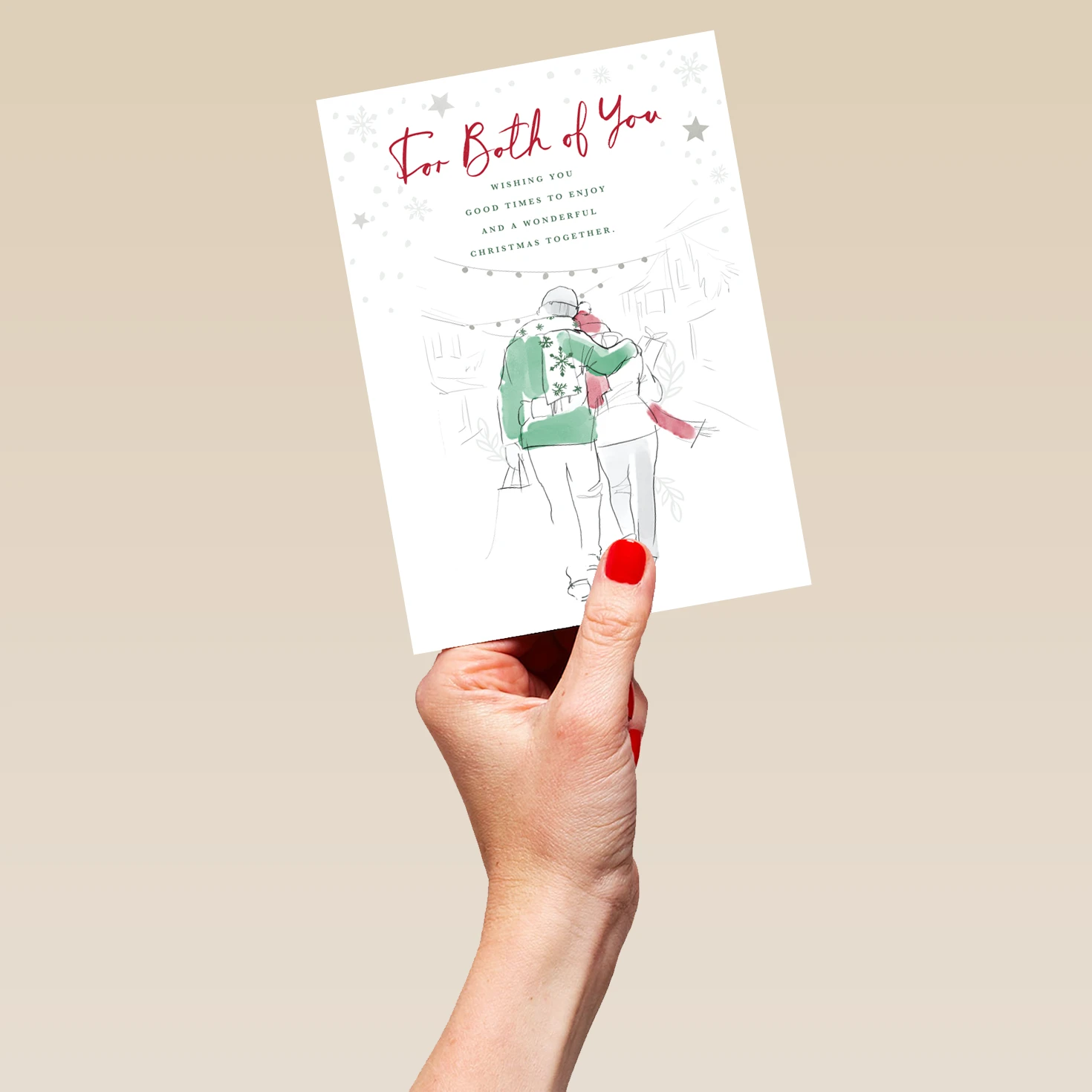 Show them you care with a personalised traditional Christmas illustrated couple to both card from Hallmark. Our greetings cards are printed on premium quality, FSC®-certified card & delivered nationwide. This card is available as standard 12cm by 16.7cm and large 15.5cm by 21.6cm.