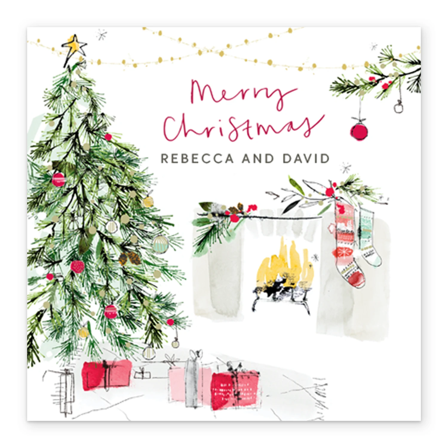 Pod Personalised Traditional Christmas To Both Tree Fireside Card