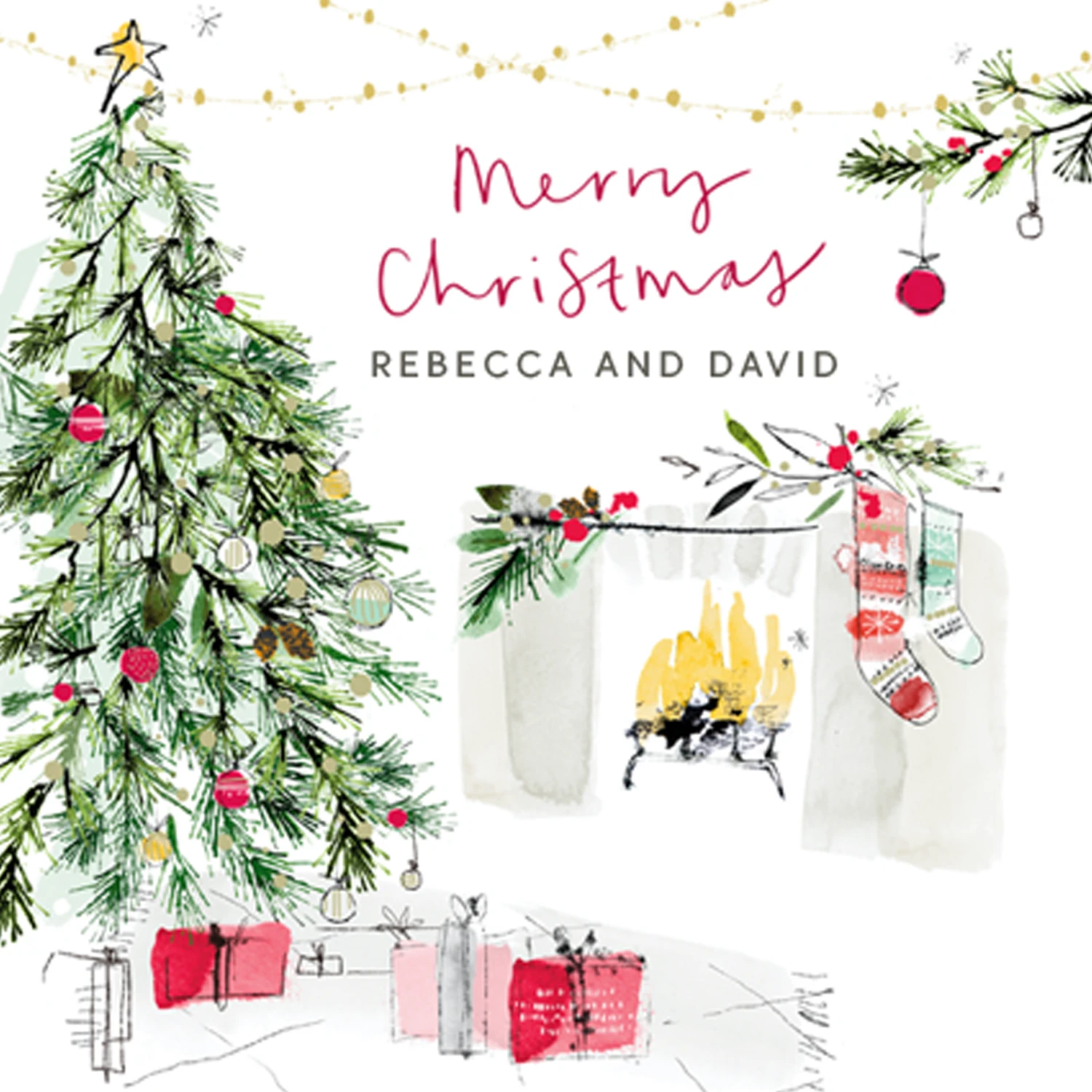 Show them you care with a personalised traditional Christmas to both tree fireside card from Hallmark. Our greetings cards are printed on premium quality, FSC®-certified card & delivered nationwide. This card is available as standard 12cm by 12cm and large 15cm by 15cm.