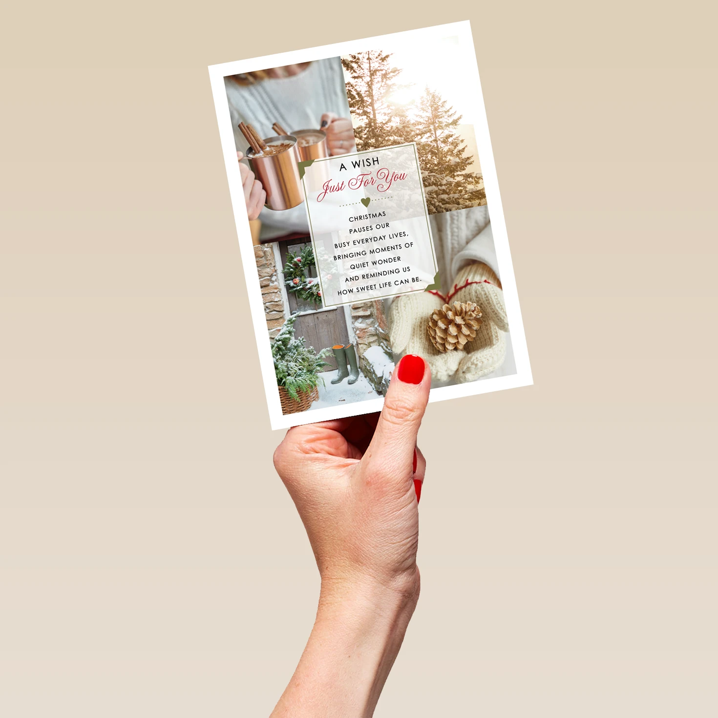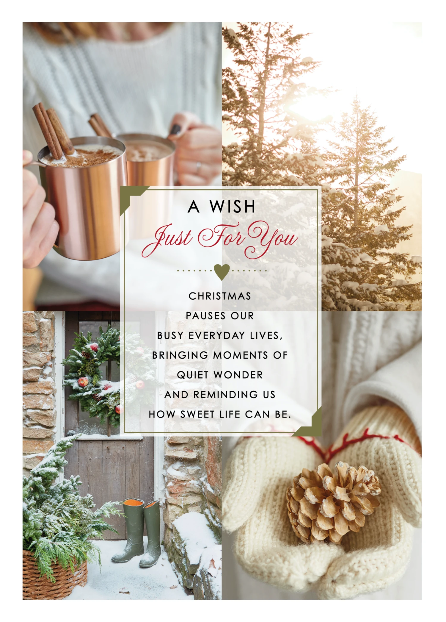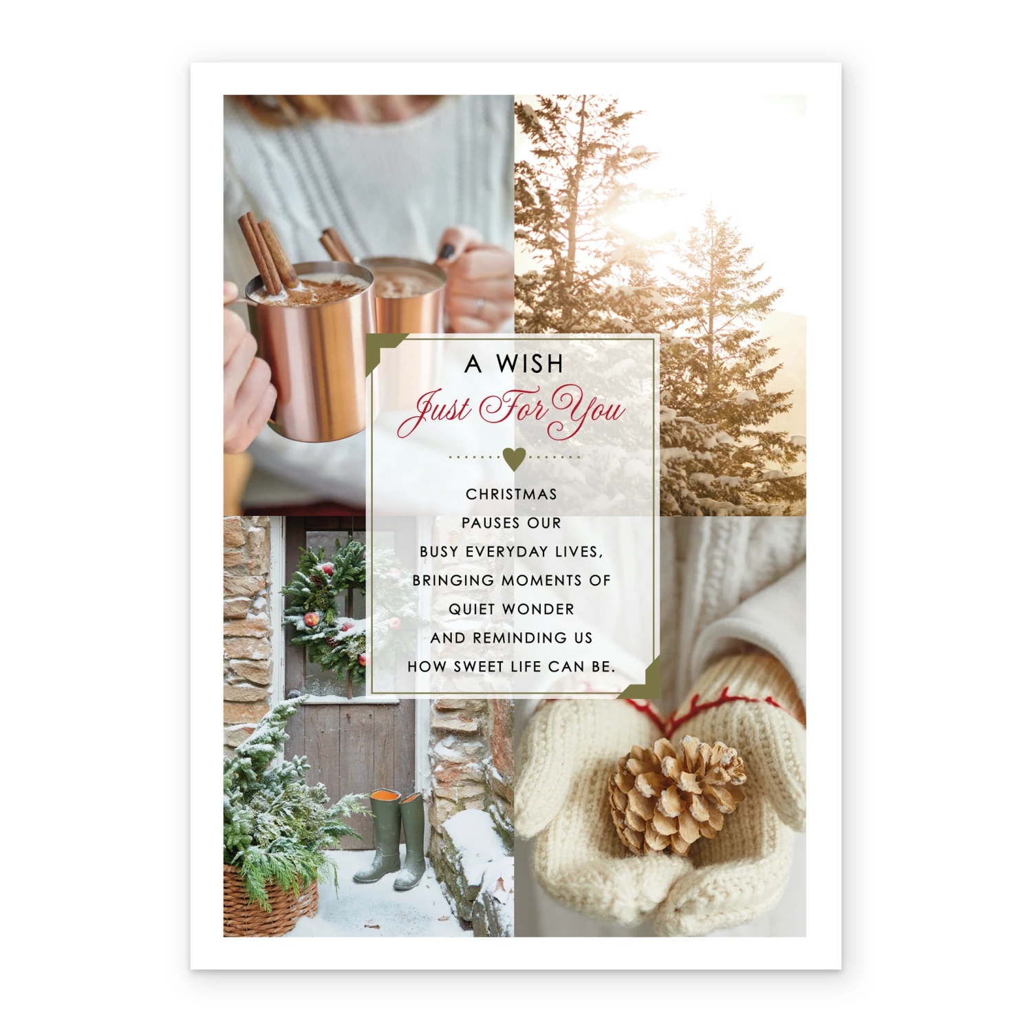 Show them you care with a personalised winter wish poem card from Hallmark. Our Christmas cards are printed on premium quality, FSC®-certified card & delivered nationwide. This card is available as standard 12cm by 16.7cm and large 15.5cm by 21.6cm.