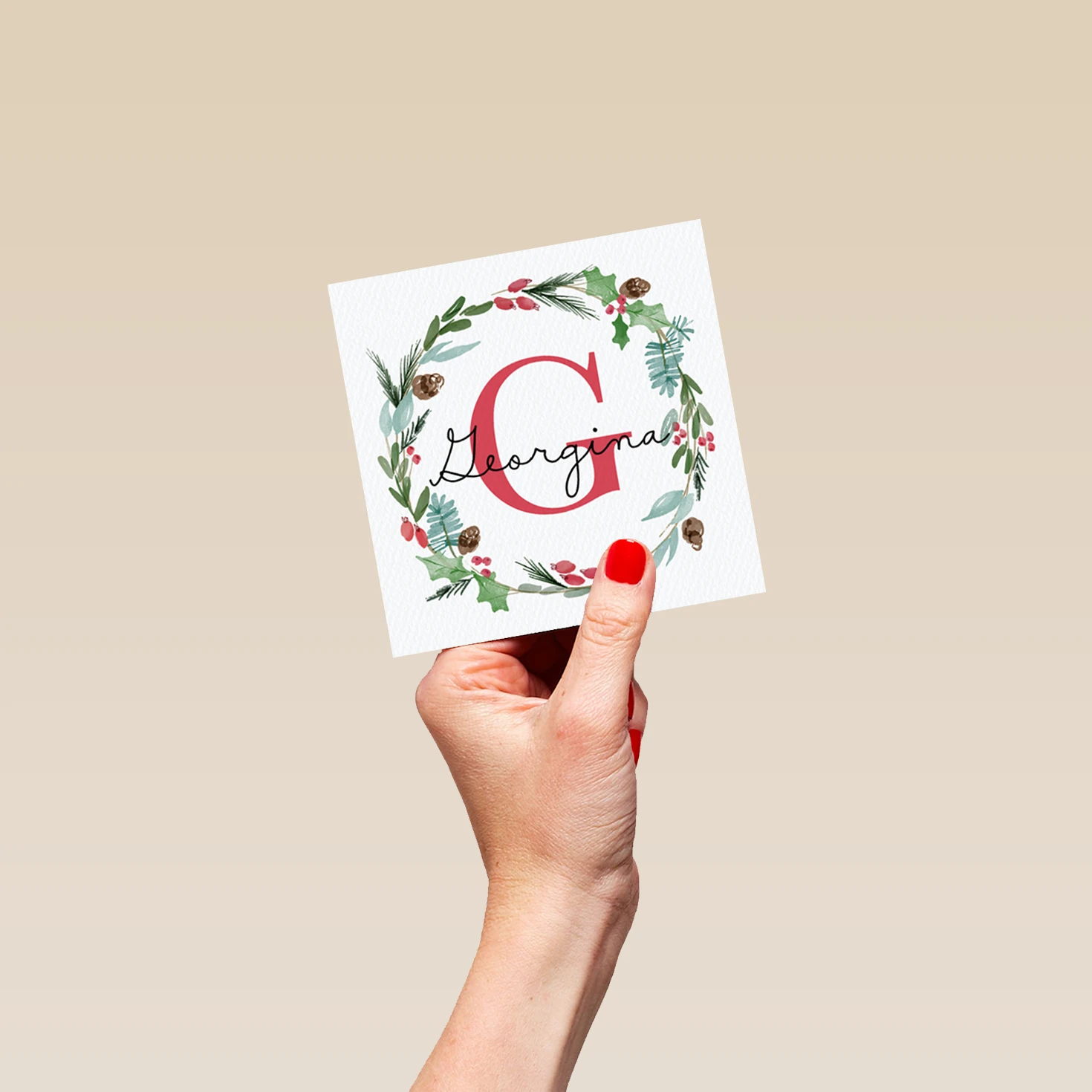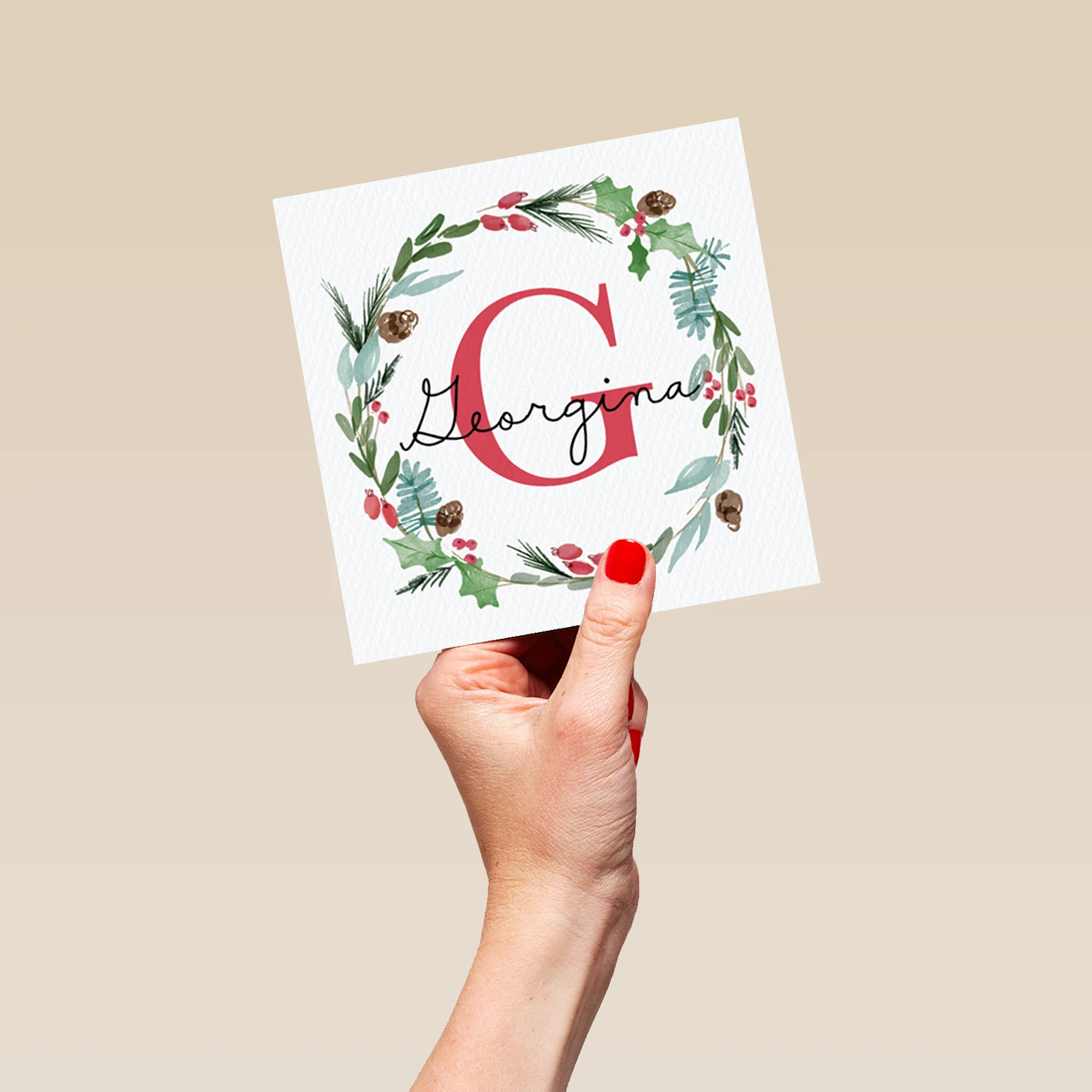 Pod Personalised Wreath Monogram Letter G Christmas Card