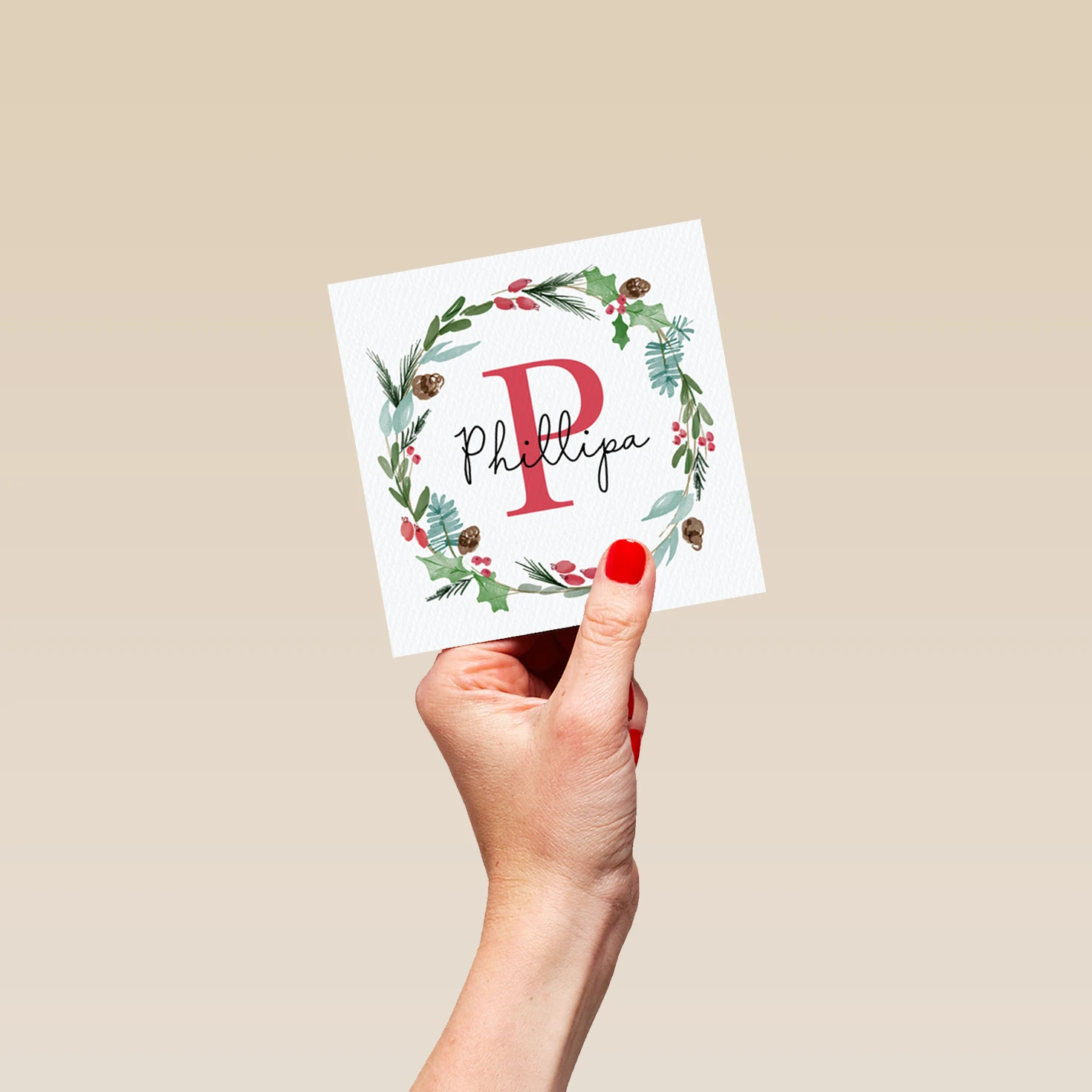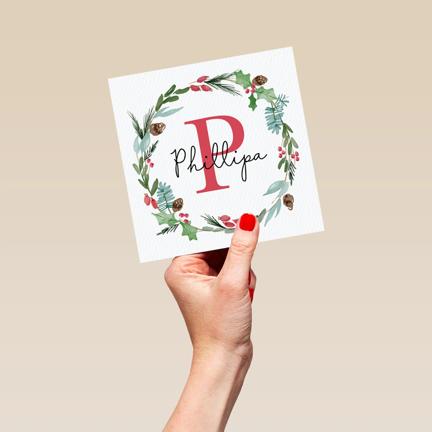 Pod Personalised Wreath Monogram Letter P Christmas Card