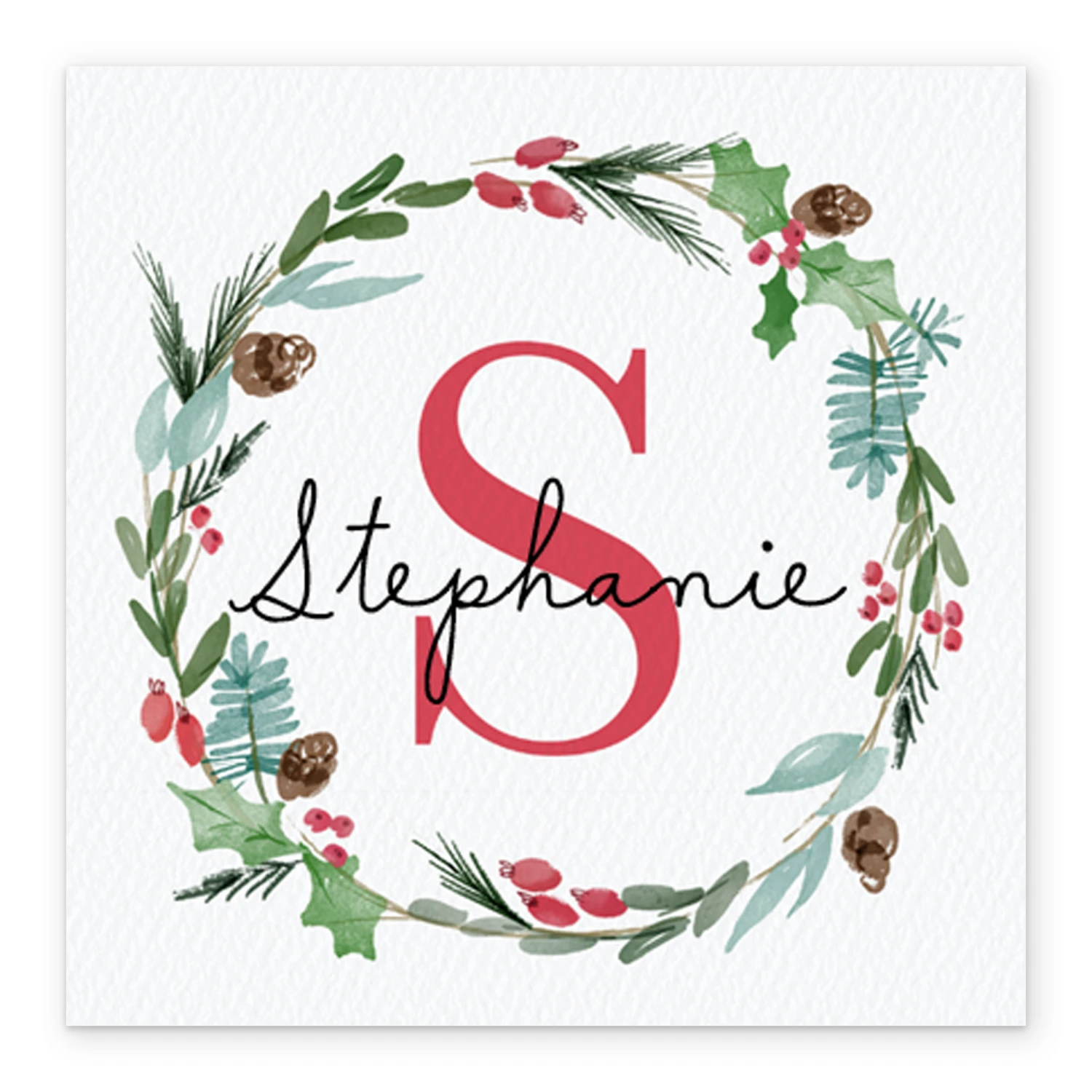 Show them you care with a personalised wreath monogram letter S Christmas card from Hallmark. Our greetings cards are printed on premium quality, FSC®-certified card & delivered nationwide. This card is available as standard 12cm by 12cm and large 15cm by 15cm.