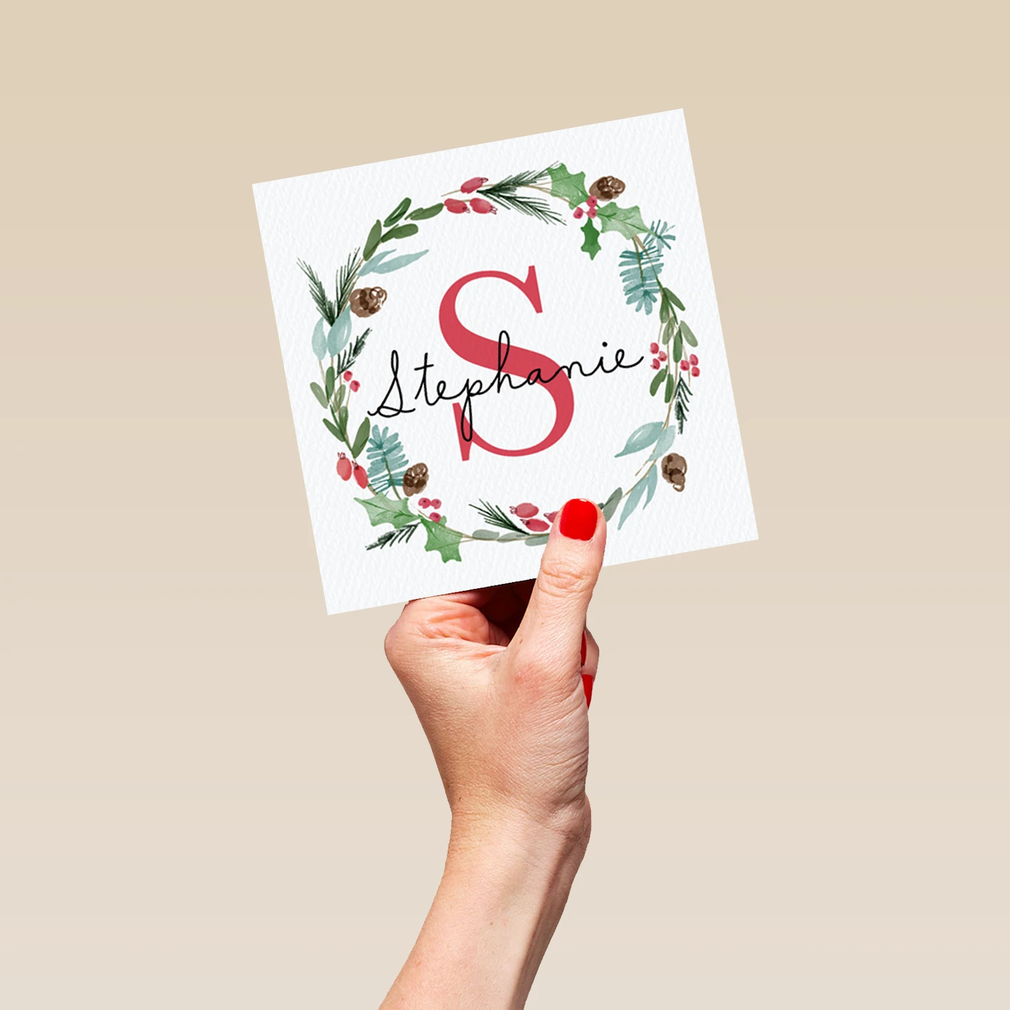 Pod Personalised Wreath Monogram Letter S Christmas Card