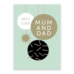 Pod Personalised Mum & Dad Black And Gold Baubles Christmas Card