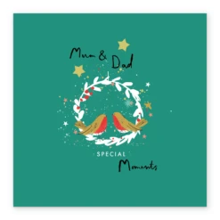 Pod Personalised Mum & Dad Illustrated Robins And Wreath Christmas Card
