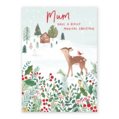Pod Personalised Mum And Dad Woodland Deer & Tree Christmas Card
