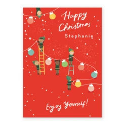 Pod Personalised Classic Christmas Cute Elves Decorating Card