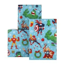 Hallmark 12m Multipack Christmas Wrapping Paper – 3 X 4M Rolls In 1 Blue MARVEL Design