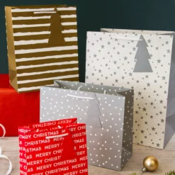 Hallmark Christmas Gift Bag Bundle – 4 Bags In 4 Festive Designs – White, Gold Silver And Red